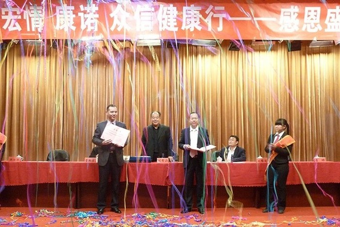 | 劉希山教授現場為大家做演示,中藥提速重大科研成果——育發寶系列產品的養發、生發、烏發、固發效果贏得了全場雷鳴般的掌聲。報告會現場,劉希山董事長還向首都中老年朋友贈送了健康禮品。