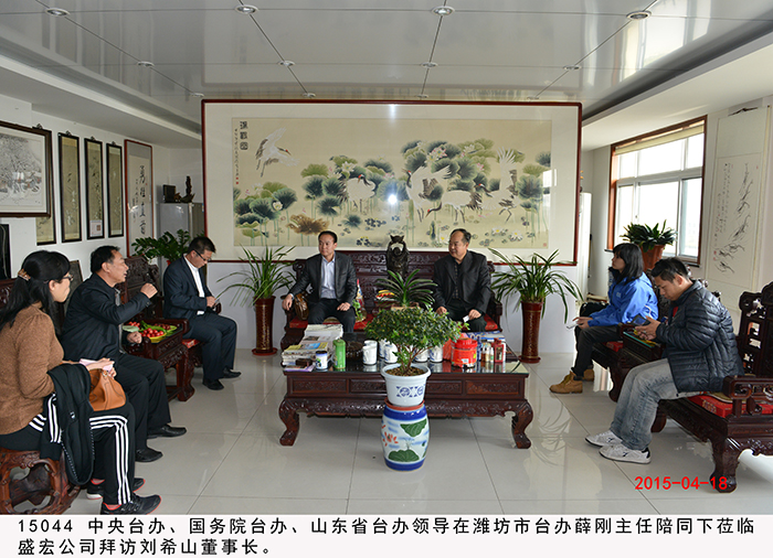 2015年4月18日,中央臺辦、國務院臺辦、山東省臺辦領導在濰坊市臺辦薛剛主任陪同下蒞臨盛宏公司拜訪劉希山董事長。中天電視公司等各媒體記者同時蒞臨采訪。各級領導和媒體對劉希山董事長掌舵下的盛宏公司在電磁治療儀治療股骨頭壞死、腰椎間盤突出等頑疾領域做出的突出貢獻予以高度評價。