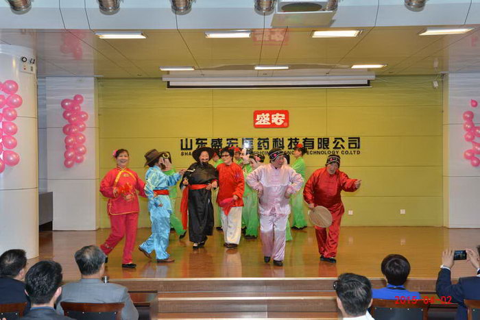 十八載懸壺盛宏公司長成翩翩少年; 三百年濟世希山教授再繪巍巍明天。 2015 年4月2日 ,值盛宏公司十八周年誕辰,公司多功能會議室里載歌載舞,盛宏老年舞蹈隊、濰坊市百花藝術團與盛宏職工聯合獻藝祝賀,《開門紅》、《盛宏贊歌》、《老娘》、《祖國不會忘記》、《陽光路上》、《小蘋果》、京劇選段等一個個精彩的節目將愛心和幸福傳達給了每一位現場觀眾,并將祝福遙送到每一位關心盛宏和使用盛宏的朋友、代理商及在外的盛宏員工。劉希山董事長、王秋萍總經理與盛宏公司在家員工滿懷喜悅之情共同觀看了演出。 注: 三百年:盛宏公司的前身“盛宏堂”成立于1738年,距今近300年。 |