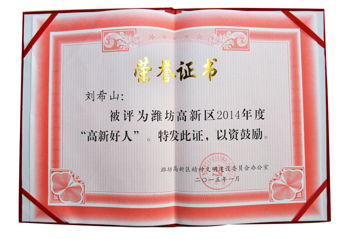 近日,劉希山董事長被高新區精神文明辦評為“高新好人”,山東盛宏醫藥科技有限公司被中共濰坊市委宣傳部評為“四德工程示范企業”,并于2015年2月4日分別頒發了證書和銅牌。 劉希山董事長是透化療法專利發明人,在他的帶領下,盛宏公司為百萬股骨頭壞死、腰椎間盤突出、頸椎病等頑疾患者送去了健康,向社會捐款捐物990余萬元,資助127名大學生完成學業,拿出1000萬元設立“盛宏慈善基金”。盛宏公司榮獲200多項大獎,劉希山教授獲得“全國敬老助老模范”、“省優秀共產黨員” 、 “道德模范”、 “ 最具愛心慈善個人 ” 等榮譽稱號。 |