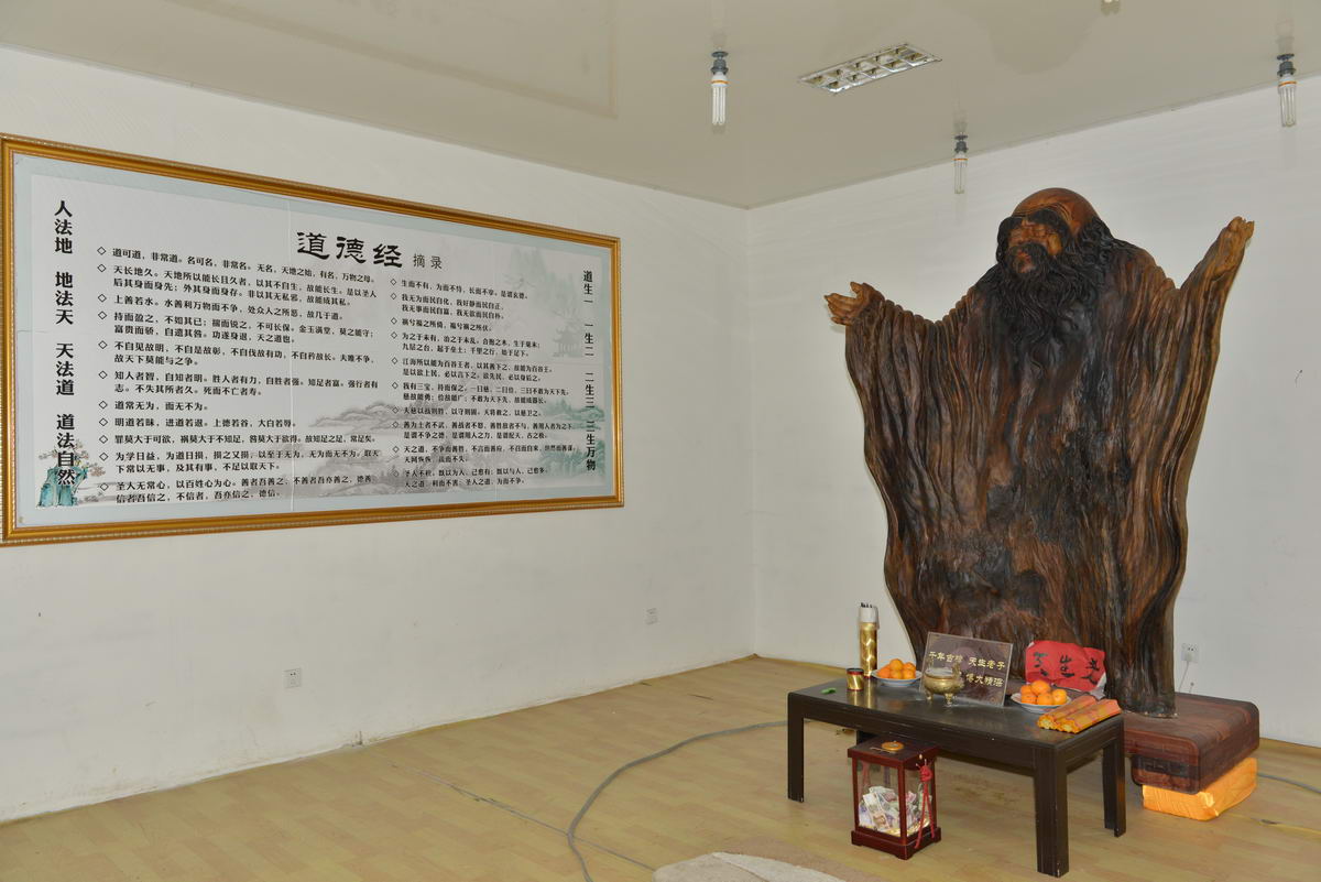 老子古匾館,盛宏四館(博物館、萬旗館、老子古匾館、榮譽館)之一,該館比過去的老子館規模擴大十倍。館內供巨型老子古樟雕像,高2.44 米,寬1.98 米,五人合抱有余,此樹出自緬甸。
