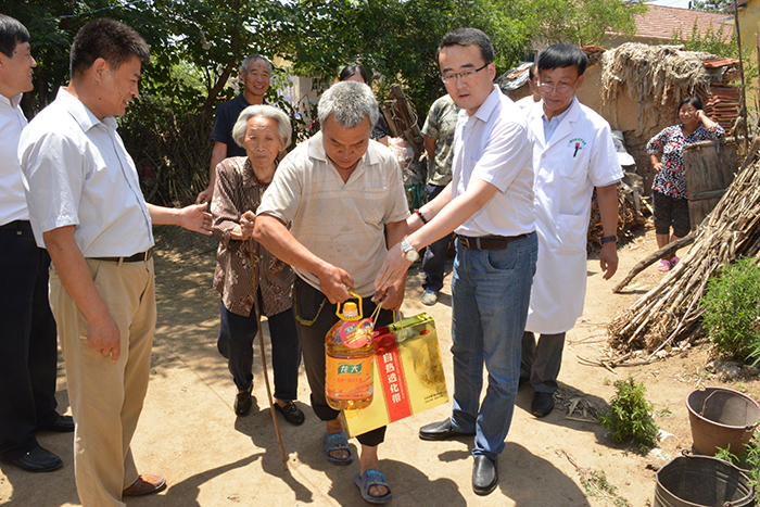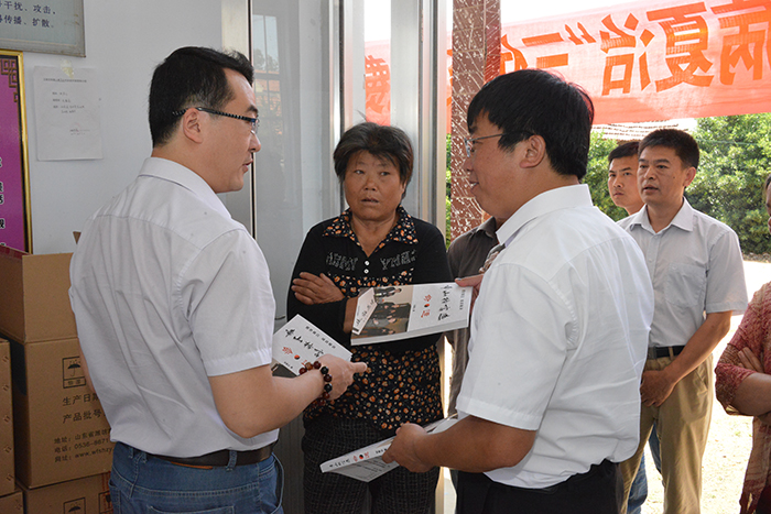 濰坊市人社局王瑞亮副調研員,勞動監察處周鍇主任、王美洲書記,峽山區黨工委委員郭友亮副主任,政治部劉英會副主任,扶貧村第一書記張善元等駐村幫扶小組的干部心系群眾,他們陪同盛宏醫藥帶隊副總陳夢龍走訪慰問了五家特困戶,并向特困家庭贈送了花生油、面粉等慰問品。扶貧進村、醫藥進村、文化進村——陳夢龍副總謹遵盛宏醫藥董事長劉希山、總經理王秋萍要求,另外向該村贈送了國學著作《希山格言選》,老百姓拿到書后愛不釋手。盛宏醫藥與駐村幫扶干部們的無私奉獻精神,讓所有村民深受感動。