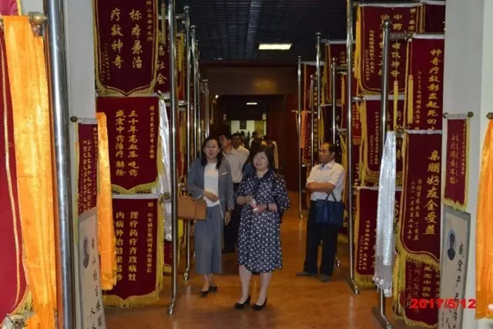 儀式結束后,濰坊學院黨委統戰部部長徐樹芝帶隊參觀了盛宏公司。王秋萍總經理及盛宏部分高管與徐樹芝部長一行交流座談,氣氛熱烈。在參觀了盛宏榮譽館、萬旗館、博物館后,徐樹芝部長肯定了盛宏公司運用中藥提速透化療法治療腰椎間盤突出、股骨頭壞死、頸椎病、關節炎等頑疾領域取得的成績,并高度評價以劉希山董事長專著《希山格言選》為精髓、盛宏四館為成果展示的盛宏文化。