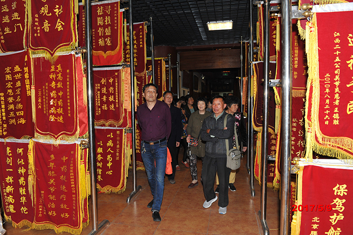 2017年5月9日,河南新鄉約200名股骨頭壞死、腰椎間盤突出、頸椎病、關節炎等頑疾患者,不遠千里奔赴山東盛宏醫藥參觀問診,受到熱情接待。領隊李福江先生說:“河南人喜歡山東人,更喜歡濰坊人!因為盛宏公司研發成功的電磁治療儀,內病外治,經皮給藥,二十年來為千千萬萬的河南人祛除了骨病頑疾,這是我親眼目睹、親身經歷的!”客人們參觀了盛宏榮譽館、博物館、萬旗館等“盛宏四館”,親身感受了中醫藥科技的震撼與盛宏文化的溫馨。
