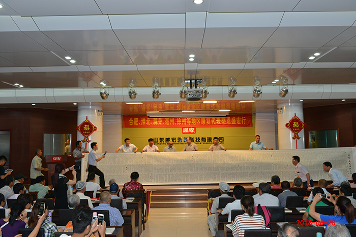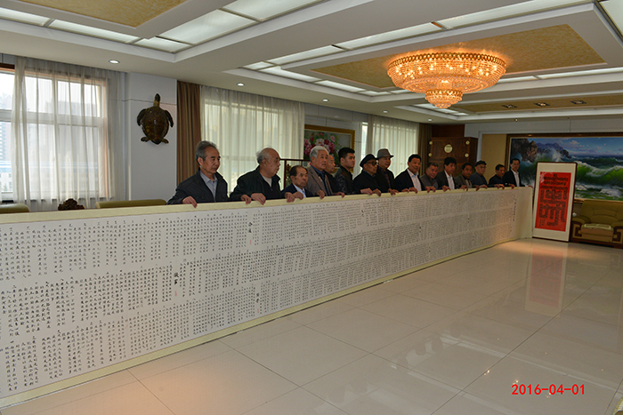 | 4月1日,盛宏公司舉行十九周年慶典。公司董事長劉希山、夫人喬桂美、總經理王秋萍等出席慶典,華風書畫院院長呂傳義、榮譽院長周瑞春、副院長李豐群及石成忠等各位大家獻上了近30幅精美字畫。 青州市東夏鎮夏莊村80歲的李慶瑞老先生,是中國書畫家協會會員,華風書畫院院士,國家一級書法家。他讀《希山格言選》后深受震撼。為教育感化世人,他耗時百日,將兩萬字的《希山格言》用三厘米大小的正楷寫成24米長卷。今天,李老親自帶來獻給格言作者劉希山教授,震撼全場。 |