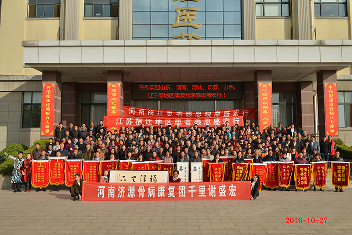 | 感恩盛宏行達到158批 10月27日,來自河南、江蘇、河北、山西、遼寧、山東,300多名腰椎間盤突出、股骨頭壞死、頸椎病等頑疾康復患者赴盛宏公司總部謝恩。截止2016年11月,赴盛宏謝恩的康復患者達到了27省、100多地市、158批,共計六萬多人次。 |