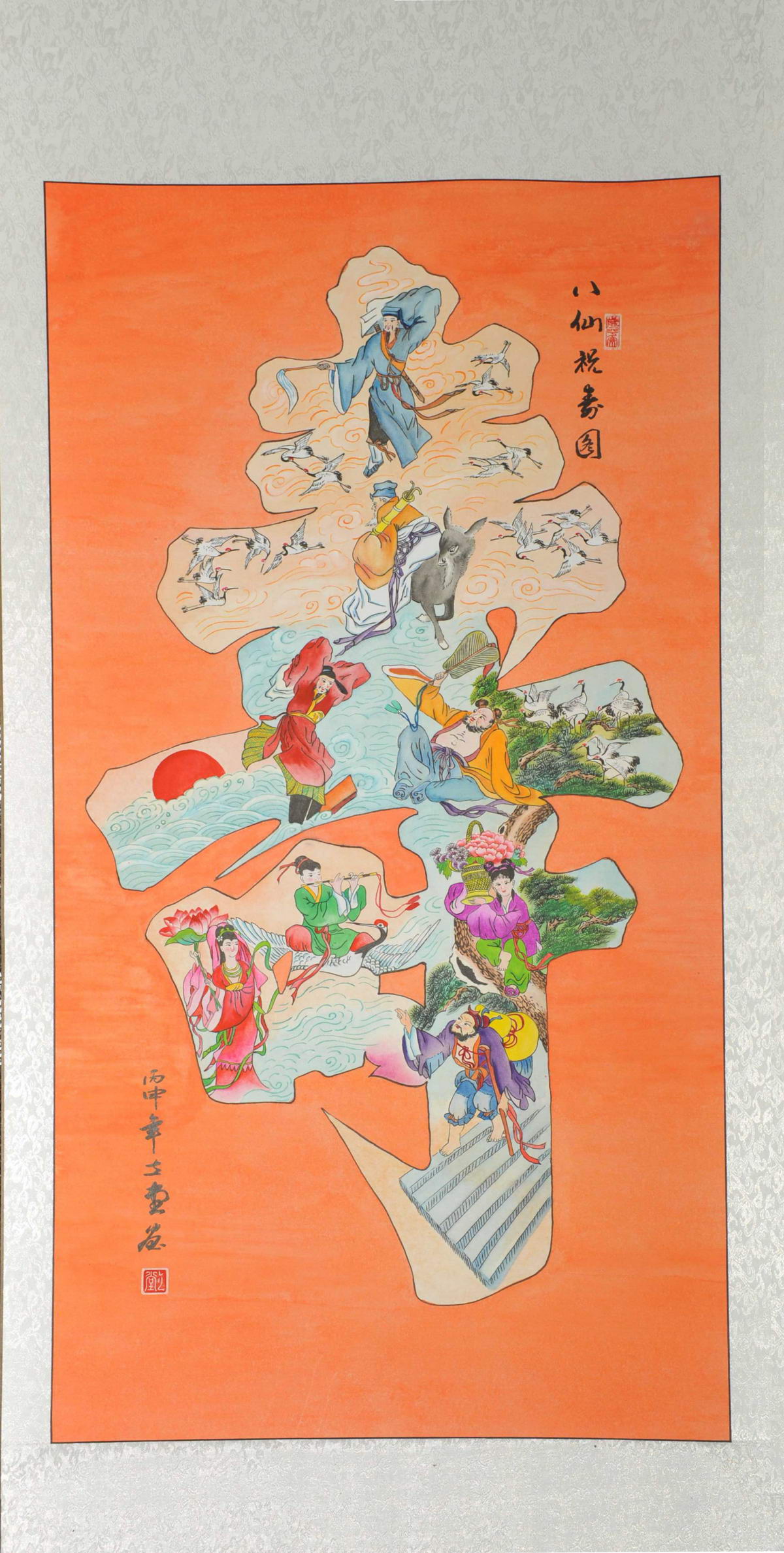劉希山教授親筆書寫“一生百年青年壽”。 1、“一筆七字壽”包括了“一”、“生”、“百”、“年”、“青”、“年”、“壽”七個字。 2、其中間一豎代表“一”;“壽”的上半部分乃“生”字;下半部分之左側為“百”字,右側為“年”字;上下又是“青”、“年”二字,整體合成即“壽”字。3、該壽字腰板硬朗,四肢靈活,故健康有活力。 4、壽不斷:一筆寫成,象征一生到百年,并象征氣血貫通。 5、榮獲國家專利(專利號:ZL201330160989.9) |