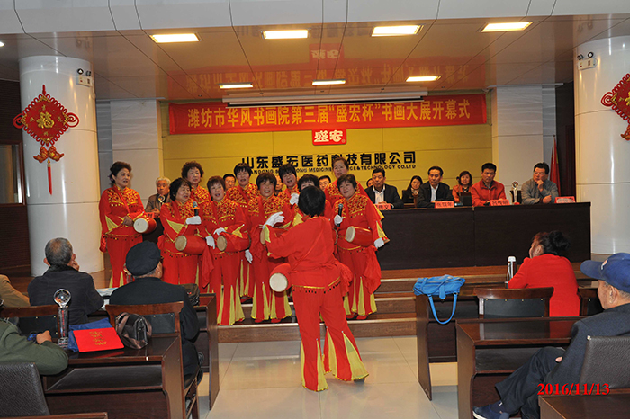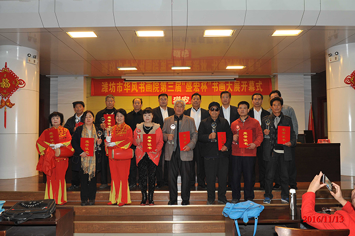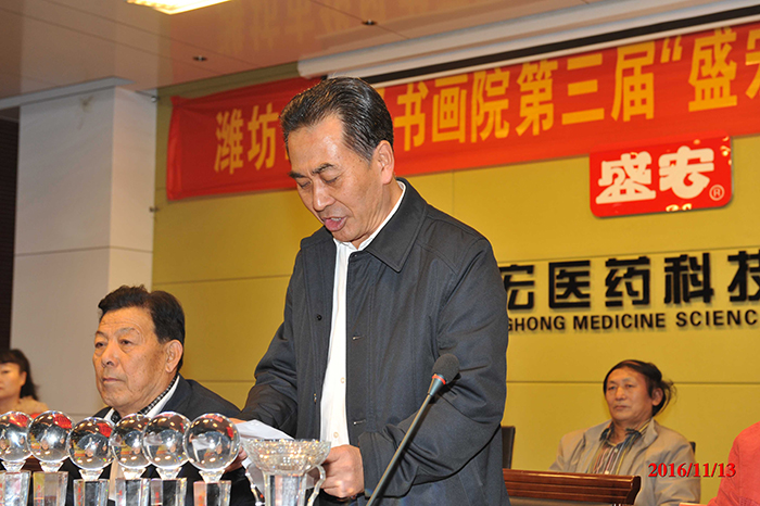 華風書畫院第三屆“盛宏杯”書畫大展精彩紛呈 2016年11月13日,濰坊市華風書畫院第三屆“盛宏杯”書畫大展在盛宏書畫館隆重開幕。濰坊市委黨史研究室主任張瑞年、盛宏公司執行總經理劉桂波、華風書畫院院長呂傳義等分別講話。書畫院各副院長及150多名院士等共同出席開幕式,200多幅優秀作品參展。 盛宏公司是中藥提速的發源地,先后為百萬股骨頭壞死、腰椎間盤突出、頸椎病、關節炎等頑疾患者送去了健康。“盛宏杯”書畫大展在這里已經舉辦了三屆,一屆比一屆上規模,一屆比一屆上檔次,受到了濰坊社會各界的廣泛關注,影響力步步擴大。 山東省優秀共產黨員、道德模范、盛宏公司董事長劉希山近年來先后向社會捐款捐物1000多萬元,并拿出1000萬元成立盛宏慈善基金。對華風書畫院的無私贊助,是他向社會奉獻愛心的一部分。 |