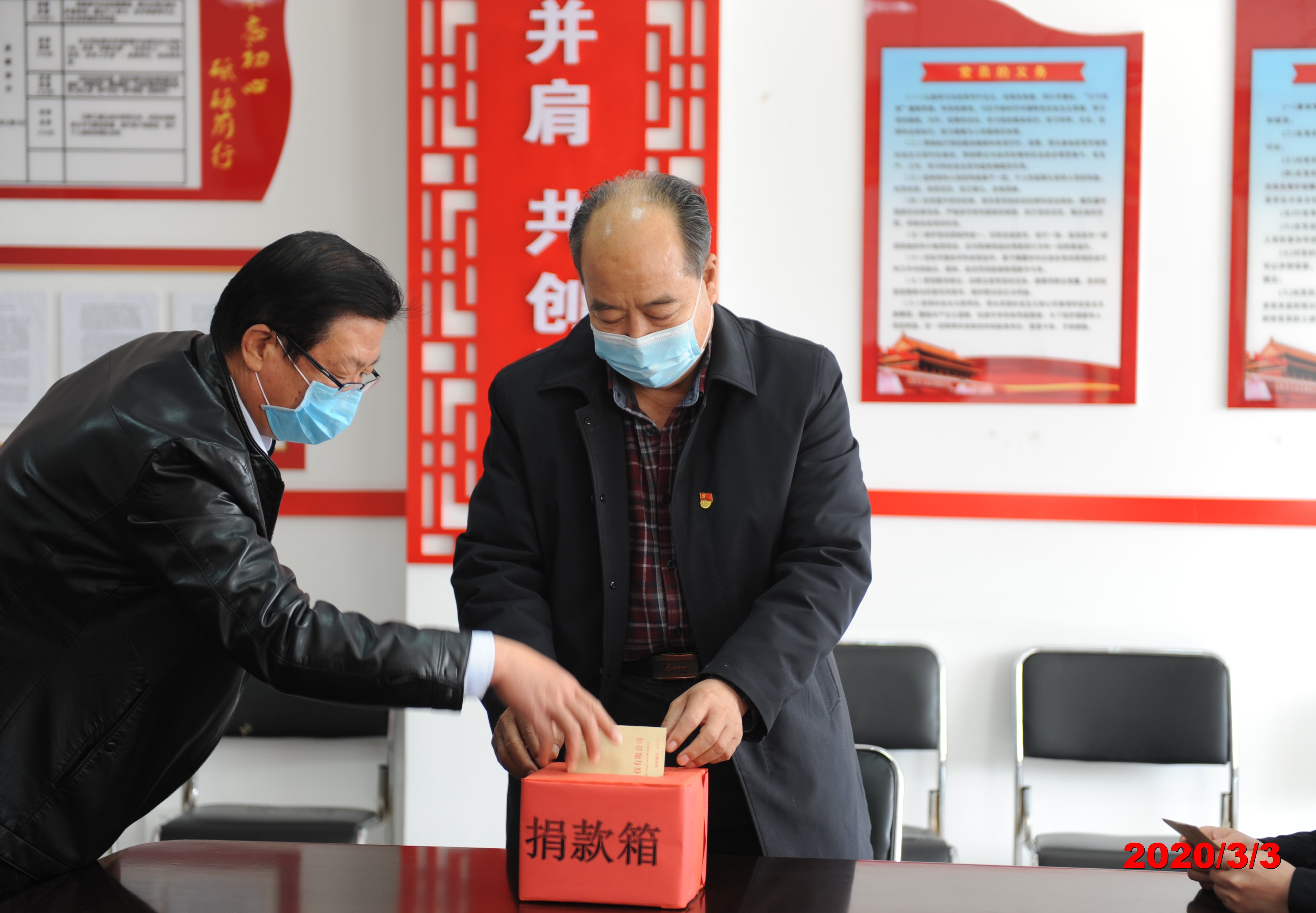 2020年3月3日盛宏黨支部書記、盛宏董事長劉希山與盛宏公司全體黨員帶頭捐款