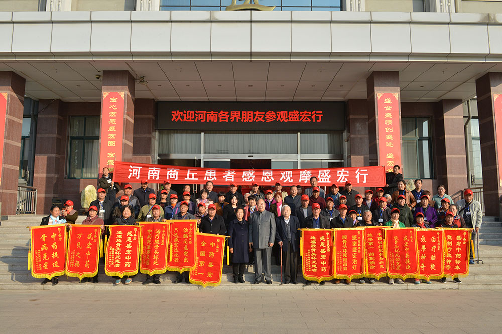 河南客人先后參觀了盛宏榮譽館、博物館、萬旗館、老子館等盛宏四館,并參觀了盛宏科研樓。大家親眼目睹了盛宏39項國家專利、200多項大獎、10萬級凈化車間、以及全國康復患者獻上的16000多面謝恩錦旗,為中醫藥的潛能深感震撼。康復患者在盛宏公司會議室分享了康復經歷,并聆聽了健康報告。盛宏專家為他們免費診療。正如山東省優秀共產黨員、道德模范、盛宏公司董事長劉希山說的:“一個有希望的企業,它的精神財富應大于物質財富,無形資產應大于有形資產”、“盛宏中藥提速產品,你可以形似,但無法神似。你可以模仿它的外觀,但無法模仿它的療效”。