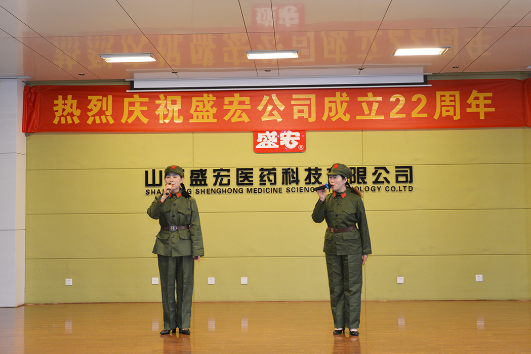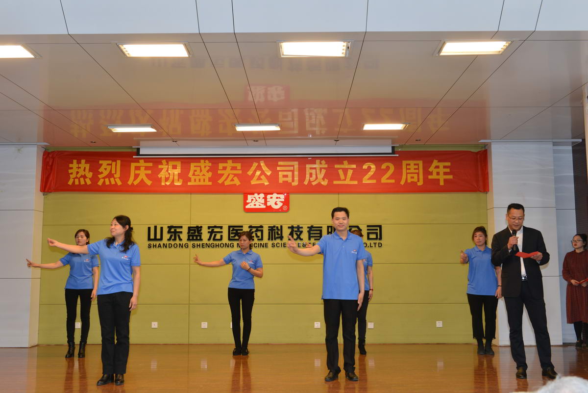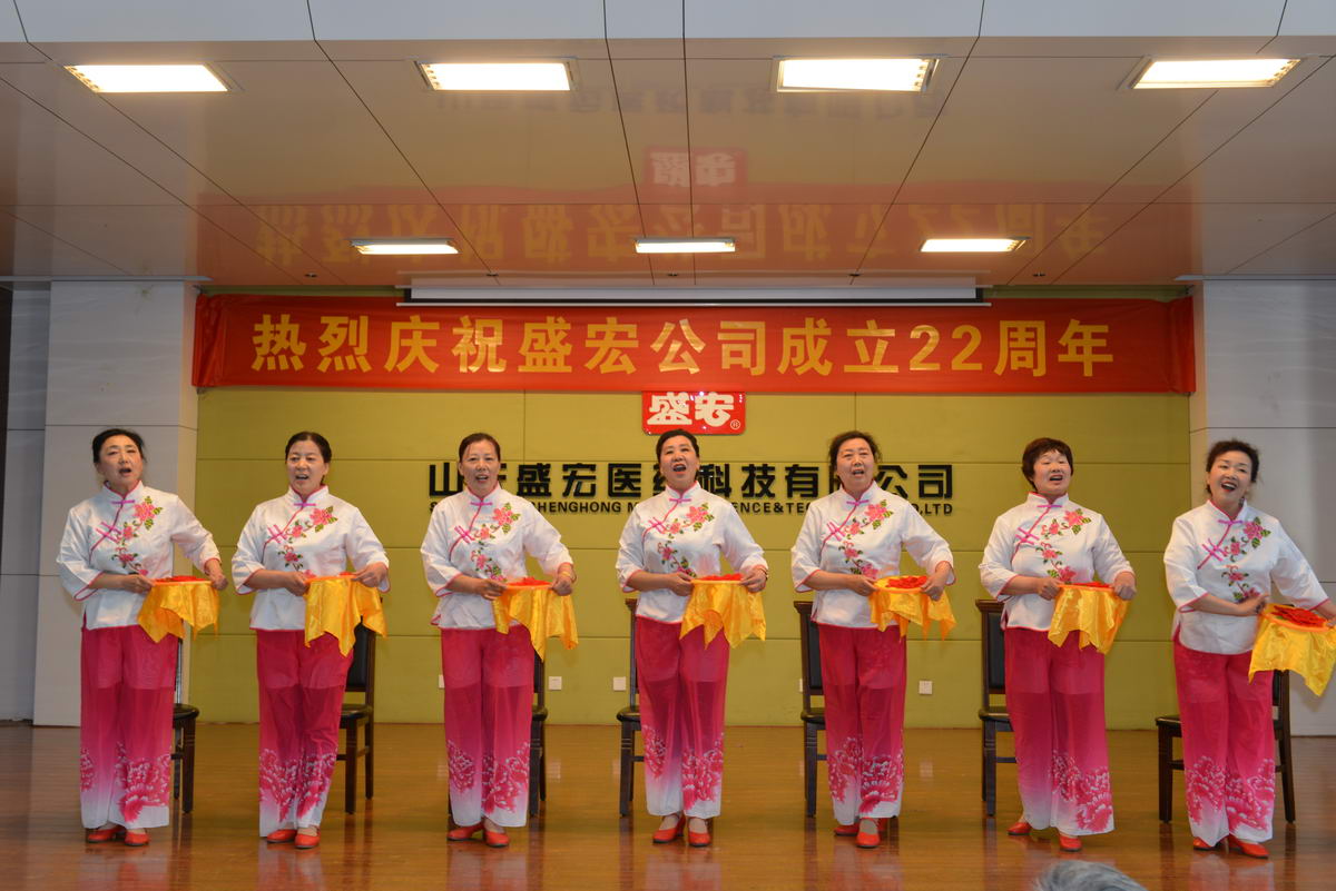 2019年4月2日,晴空萬里、百花盛開,盛宏公司迎來了她的22周歲生日。88歲的濰坊市人民醫院原院長夏寶樞,濰坊市人民醫院原副院長韓榮芳,濰坊市作家協會原主席穆陶,濰坊衛生學校原校長于守信,濰坊市皮膚病防治所原所長鄭大有,濰坊市藥檢所原所長于志超,濰坊市立醫院原醫務科主任王杰,90歲的濰坊醫學院資深教授、碩士研究生導師白林,軍醫、主治軍醫衛生隊長梁坤義等醫學界老前輩蒞臨祝賀。盛宏公司董事長劉希山熱情接待“鶴祥十老”,并同各位來賓、盛宏公司全體員工在多功能會議室共同觀看了精彩的文藝節目。