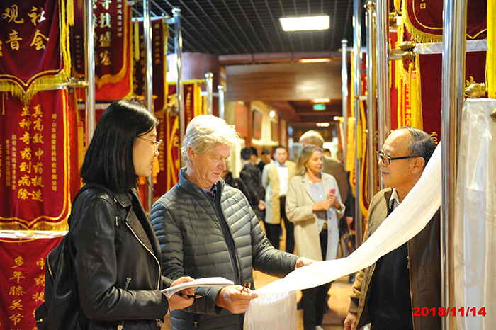 2018年11月14日,德國海德堡大學醫院教授Gerd Noeldge與夫人、美國紐約州立大學醫院教授S.J.A.Sclafani與夫人、德國馬爾市立醫院教授Dieter E.Apitesch與夫人,在濰坊市人民醫院原院長夏寶樞、青島大學附屬醫院放射科主任、博士生導師徐文堅等陪同下蒞臨盛宏公司參觀考察。盛宏公司董事長劉希山董事長熱情接待海內外各位醫學專家,并陪同專家們參觀了盛宏博物館、萬旗館、榮譽館和老子古匾館。