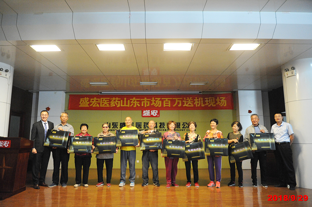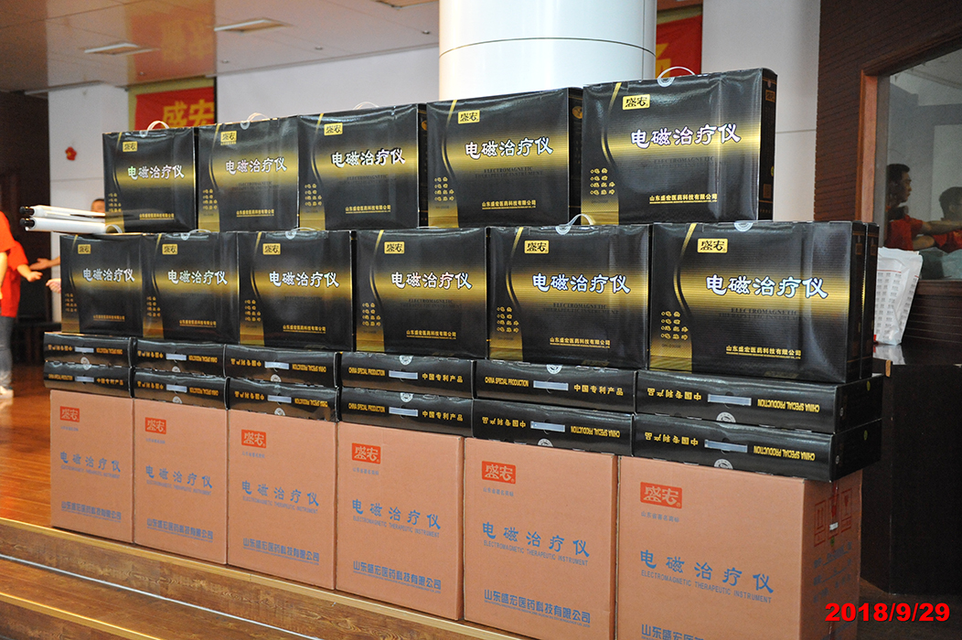 電磁治療儀是國家火炬計劃項目,榮獲39項國家專利,被譽為“骨病克星”。2018年9月29日,山東盛宏醫藥科技有限公司贈機儀式在公司辦公樓一樓會議室舉行,企業將專利產品電磁治療儀分別贈送給本省患有股骨頭壞死、腰椎間盤突出、頸椎病、各關節炎等頑疾的患者,受到患者和社會各界高度評價。