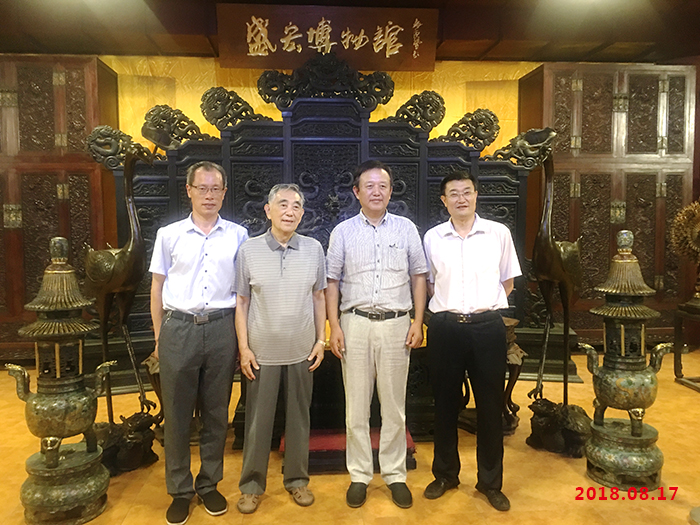 2018年8月17日,濰坊市人民醫院原院長、著名放射學家、享受國務院特殊津貼者夏寶樞,陪同青島大學附屬醫院放射科主任、博士生導師徐文堅一行五人蒞臨盛宏公司參觀考察。盛宏公司執行總經理劉桂波受劉希山董事長委托熱情接待各位醫學專家,并陪同專家們參觀了盛宏博物館、萬旗館、榮譽館和老子古匾館。