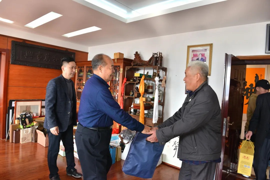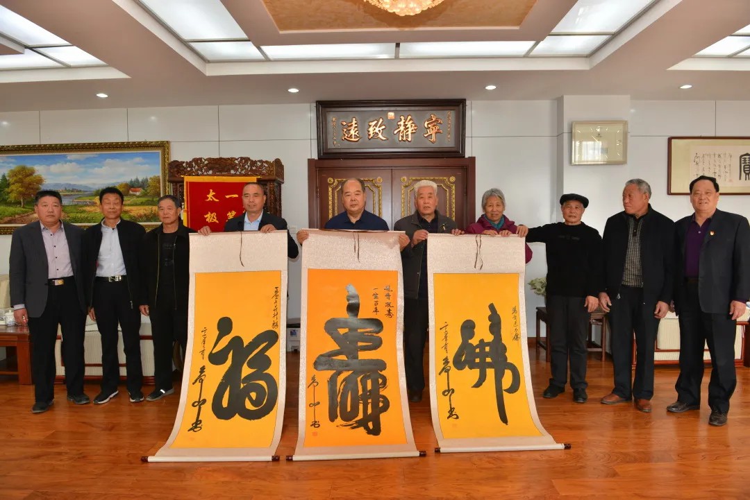 “有朋自遠方來,不亦樂乎!”劉希山董事長親自接待客人,并回贈了親筆創作的“一步登天藏龍福”等太極體大作。