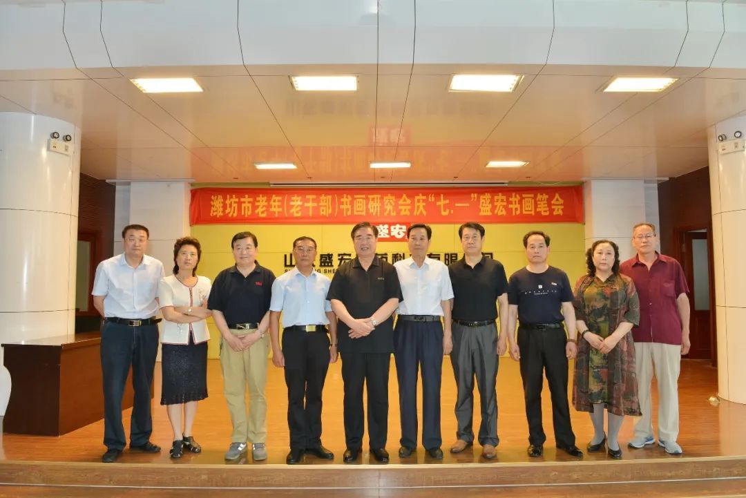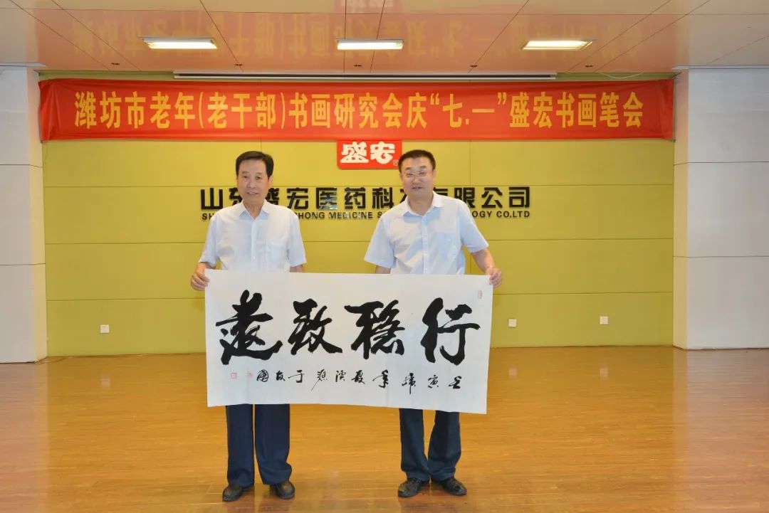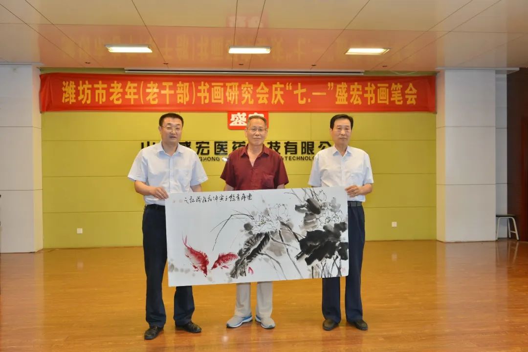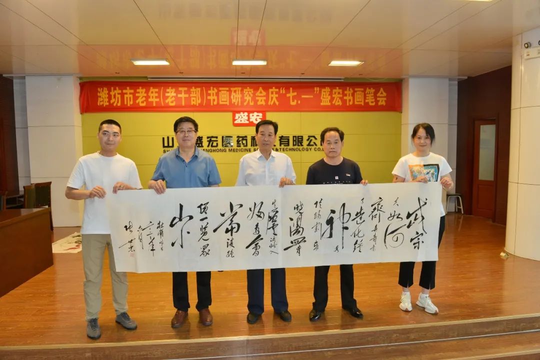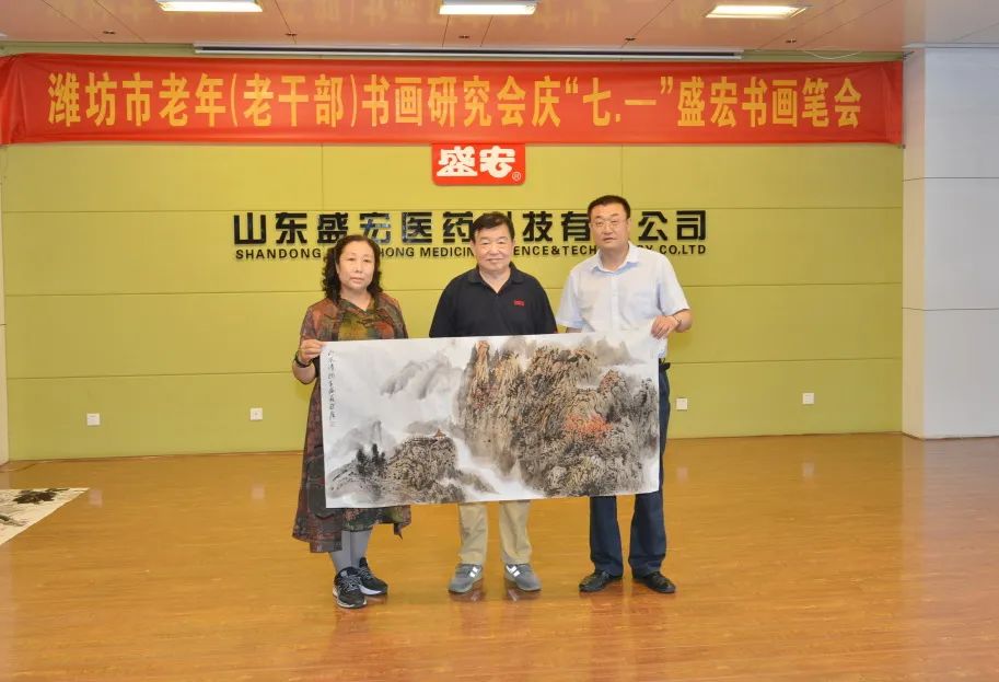 一夜雷雨后,萬象墨潤新。2022年6月17日上午,濰坊市老年(老干部)書畫研究會慶“七·—”盛宏書畫筆會在山東盛宏醫藥科技有限公司多功能會議室舉行。濰坊市老干局原局長李樂起,濰坊市老年書畫研究會會長、濰坊市老干部書畫研究會會長、著名書法家于友國等領導與各位濰坊書畫名家濟濟一堂,在全國書畫藝術委員會副主席、濰坊市道德模范、山東盛宏醫藥科技有限公司董事長劉希山陪同下揮毫獻藝。