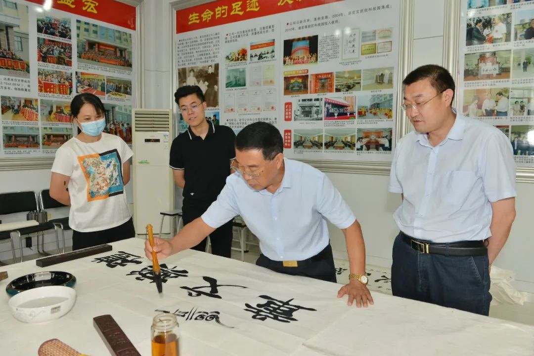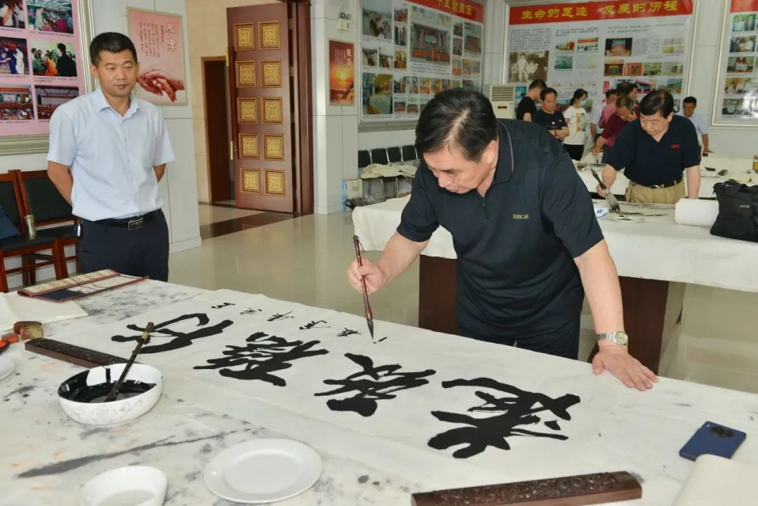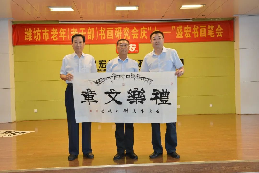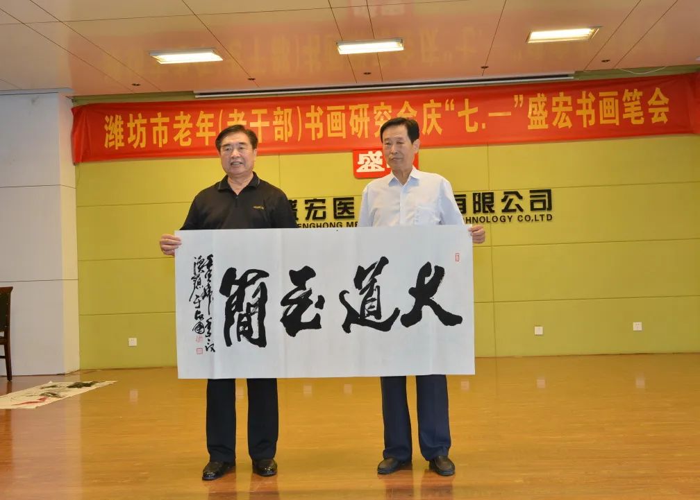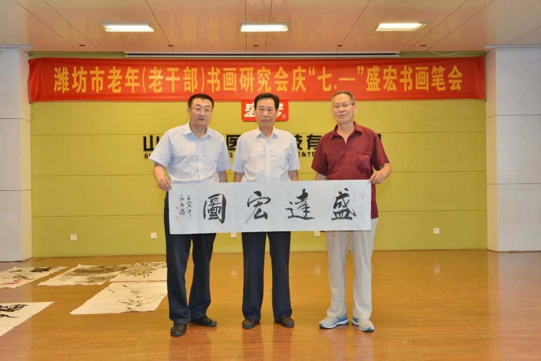 一夜雷雨后,萬象墨潤新。2022年6月17日上午,濰坊市老年(老干部)書畫研究會慶“七·—”盛宏書畫筆會在山東盛宏醫藥科技有限公司多功能會議室舉行。濰坊市老干局原局長李樂起,濰坊市老年書畫研究會會長、濰坊市老干部書畫研究會會長、著名書法家于友國等領導與各位濰坊書畫名家濟濟一堂,在全國書畫藝術委員會副主席、濰坊市道德模范、山東盛宏醫藥科技有限公司董事長劉希山陪同下揮毫獻藝。
