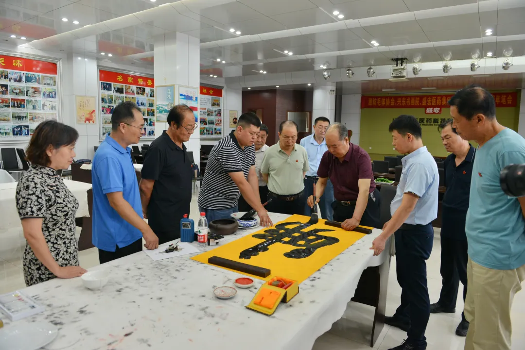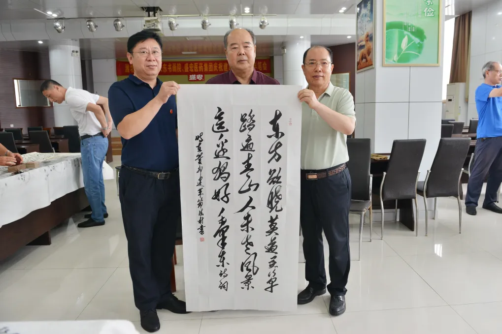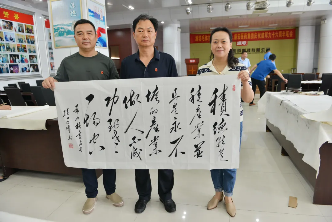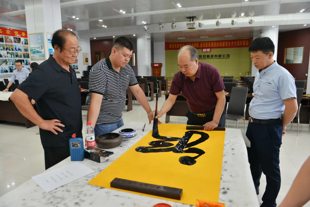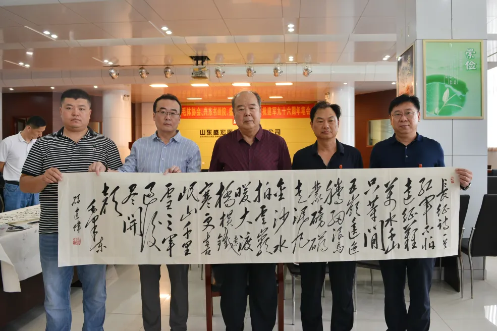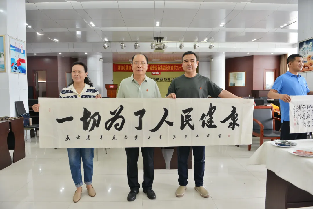 軍強民安,飲水思源。7月30日上午,濰坊毛體協會、興東書畫院、盛宏醫藥慶祝建軍九十六周年筆會,在山東盛宏醫藥科技有限公司舉行。山東省優秀共產黨員、濰坊市道德模范、盛宏公司董事長劉希山精神飽滿,親自到現場祝賀。盛宏公司副董事長王秋萍與公司管理人員熱情接待各位書法家,共賀八一建軍節。