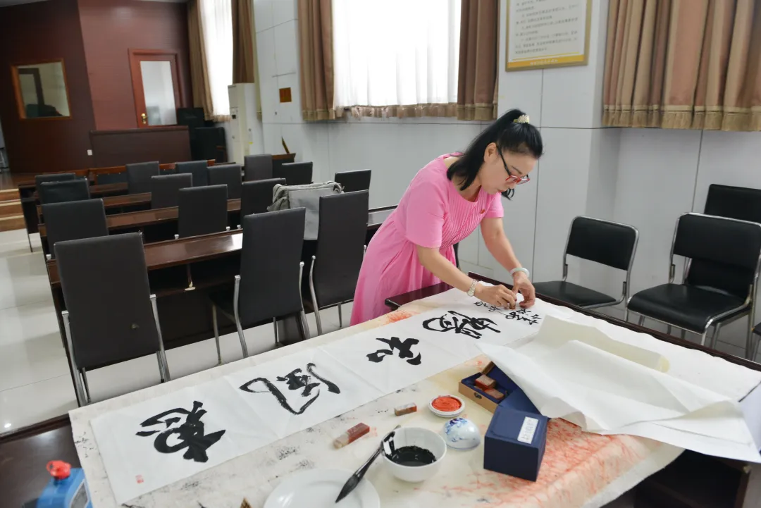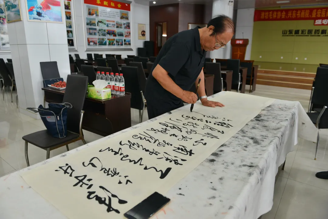 濰坊毛體協會、興東書畫院的書法家們揮毫潑墨,現場創作。