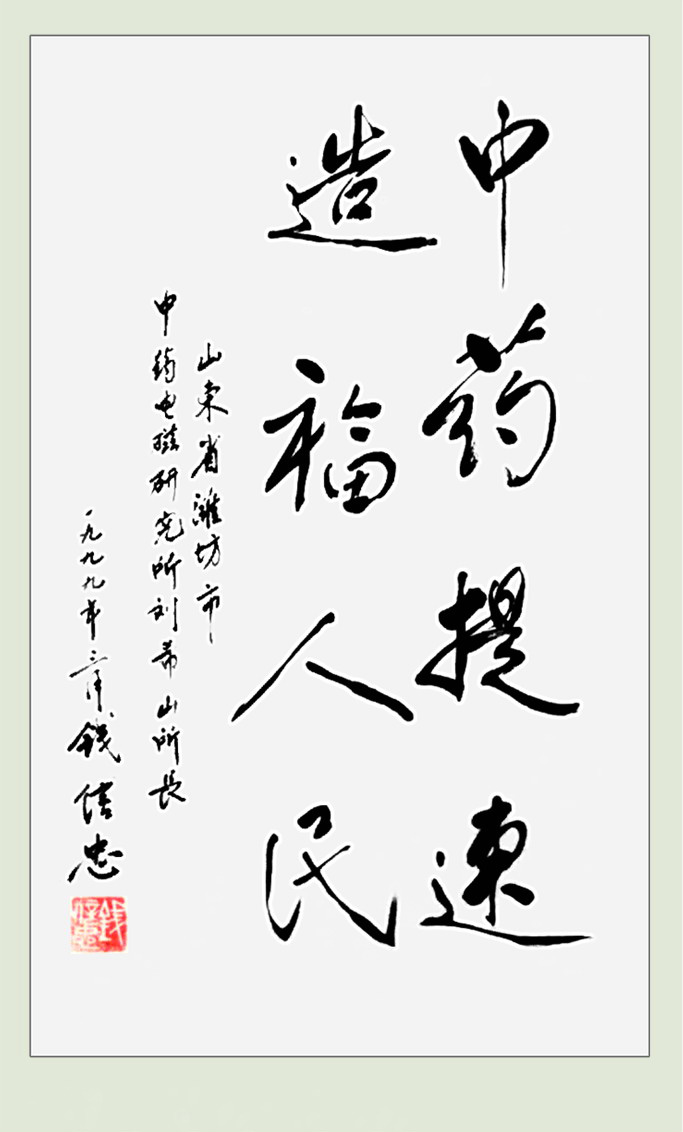 國家衛生部原部長錢信忠題詞“中藥提速,造福人民。”