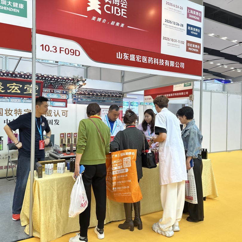 山東盛宏醫藥科技有限公司盛裝亮相廣州美博會,專業團隊攜帶透皮技術創新成果和專利產品,很快吸引到眾多行業專家和愛美人士的目光,“盛宏養發,國藥精華”再次展示行業魅力。