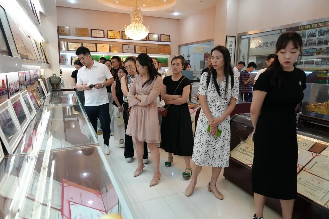 7月9日,山東冠越生物科技有限公司漫境生花團隊不顧天氣炎熱來到盛宏公司參觀培訓。盛宏公司總經理劉桂波帶領工作人員熱情接待,并陪同客人參觀了生產車間以及盛宏榮譽館、博物館、萬旗館、老子館等盛宏四館。