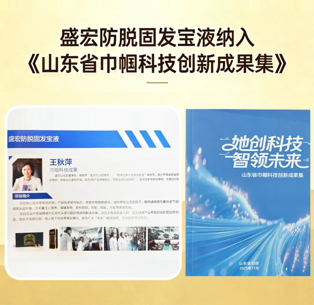 巾幗科技成果獲得者王秋萍,先后被授予"全國三八紅旗手"、"影響山東十大經濟女性"等稱號。公司致力于草本固發養發領域的研究,先后研發出50多種產品,其中2款產品并被列入"國家火炬計劃項目",前后獲得40余項國家專利,大獎200多項。