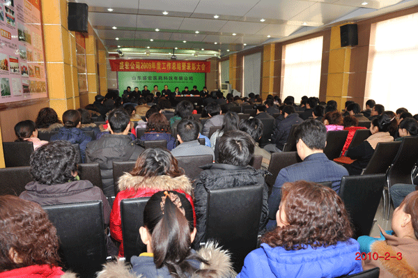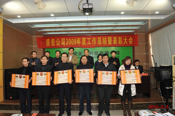 2010年2月3日 ,在公司會議室召開了全年工作總結表彰大會。劉希山董事長作重要講話,他向公司全體員工提出了做好2010年工作的三項要求:一是認真學習和貫徹落實總經理關于2010年工作的具體布置;二是公司要實現突破,關鍵抓住市場突破;三是依據新“四定位”、“四講”和“四要求”積極開展市場開拓工作。王秋萍總經理作《盛宏公司二00九年工作總結》,向董事會和公司全體員工報告了公司在09年度取得的各項業績,并就2010年市場、研發、生產等各項工作作出了具體部署。大會表彰了2009年度先進集體,員工代表上臺發言,感情激昂地表達了感恩公司創造良好發展平臺的心情,并信心百倍地表示在新年度做好本職工作的決心。