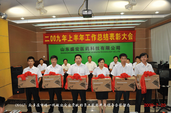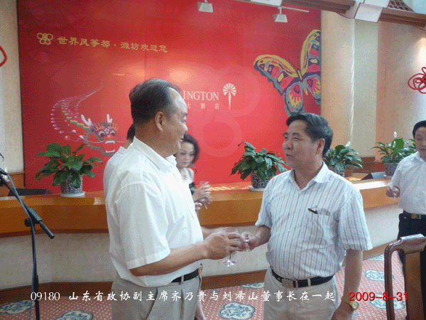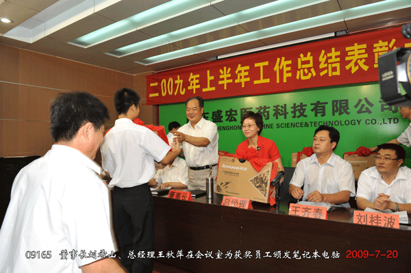 2009年8月31日,劉希山董事長應邀參加了“濰坊海外知名企業家聯誼會”。聯誼會在濰坊富華大酒店舉行,山東省政協副主席齊乃貴,省委統戰部副部長亓同秋,濰坊市委書記張新起,市委副書記、市長許立全,市政協主席趙興濤,市委副書記崔建平,市委常委、秘書長劉德成,市委常委、市紀委書記蔣文彩,市委常委、統戰部長張小梅等省市領導同志,美英韓法等海外來賓以及濰坊市部分知名企業家參加了聯誼會。 在聯誼會上,省政協副主席齊乃貴與劉希山董事長暢談醫藥創新并勉勵他在中藥提速領域再創佳績;市委書記張新起積極支持中醫藥發展和盛宏公司中藥提速事業,并與劉希山董事長合影;市委常委、市紀委書記蔣文彩對盛宏公司和劉希山董事長本人在企業文化建設方面的突出成績給予肯定,對劉希山教授創作的《希山格言選》給予高度評價;市委常委、統戰部長張小梅認真閱讀《希山格言選》,對其精神價值和哲學高度贊嘆不已,她鼓勵劉希山教授出更多更好的文化作品,以優秀的文化、優質的產品打造出“盛宏”一流的品牌。 |