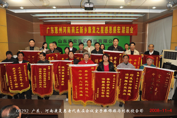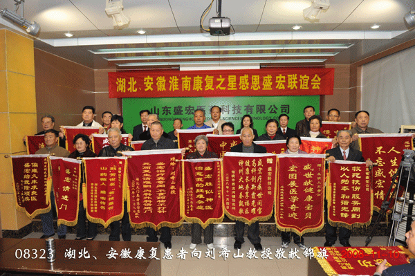 2008年11月10日 上午8:30,三輛大巴駛進盛宏公司大院,來自湖北和安徽淮南的130余名康復患者走下大巴,他們手擎錦旗,快步走向迎面而來的劉希山教授,激情地握手、燦爛的笑容與涔涔而下的淚水交織成一幅美麗動人的感恩畫卷。 在公司會議室,王秋萍總經理向遠方的客人致熱情洋溢的歡迎辭;湖北閔新漢副主任、淮南陳佩弘主任分別發言,代表康復患者表示感謝;特意到盛宏拜訪 劉希山教授的臺灣勖成公司總經理 王和平先生作為嘉賓講話,對 劉希山教授致力于中藥提速事業所做出的輝煌成就給予高度評價。 劉希山教授在一百多位感恩患者的期盼下,就盛宏中藥提速的康復原理和盛宏文化中的大愛精神作了精彩演講。“你想治好病嗎?請記住一句話包括的三要素:足量、有效的藥物到達病灶。喝水能解渴,1mg水能解渴嗎?饅頭能充饑,吃1mg饅頭能充饑嗎?不能,治病也是同樣的道理……” 劉希山教授揭天之云、驅地之霧,把一條走向快速康復的大道指示給了大家。為什么一些仿造中藥提速產品的“同類產品”逐漸銷聲匿跡?穿透力看起來比硫酸還猛的透皮凈液是否會燒壞人的身體? 劉教授告訴大家:“競爭不如競和。我們沒有拿自己的專利去打壓別人,我們的態度就是讓他們自生自滅吧。盛宏中藥提速的成功關鍵之處就在于能穿透皮膚直達病灶,這種穿透技術是我拿生命換來的,這是別人沒法仿造的。透皮凈液的可貴之處就在于它既能穿透皮膚又安全無毒副作用。” 劉教授說完拿起透皮凈液當場喝了幾口。全場報以熱烈的掌聲。“仁者,愛人也”;“愛人者,人恒愛之”。 劉希山教授之所以受到千千萬萬康復患者的愛戴,就是因為他那顆寬厚慈祥、悲天憫人的博愛之心。而 劉教授卻總是謙虛地說:“我給大家的愛太少,我給你們的只是一個療效;而你們一批批千里迢迢來看我,卻給了我更多的關愛和支持。‘老牛自知夕陽晚,不待揚鞭自奮蹄’,我會用畢生精力將中藥提速事業做到最好!”感恩的掌聲經久不息。 康復患者們將一面面飽含感激之情的錦旗獻給 劉教授,并紛紛訴說著自己康復的經歷,感恩的心聲。 王偉龍,59歲,湖北天門股骨頭壞死患者。他是一位農民,得了這種“不死的癌癥”,已經不能起床,由于沒有效果,他斷然放棄了各種治療。從醫院出院后,他通過廣播電臺接受了中藥提速療法,前13個月沒有見到明顯效果,從第14個月開始一天比一天好,使用30個藥包后扔掉了雙拐,兩年時間徹底康復。如今種了七、八畝地,還續了弦,生活美滿,其樂融融。 楊榮慧,女,69歲,湖北漢口人。患骨質增生和腰椎間盤突出,一度行動受限。2004年10月開始使用電磁治療儀,3個月后能唱能跳,獲得康復。 榮德祿,64歲,湖北仙桃人。這位農民中的“名人”—“天下第一農”稱號獲得者,曾因長子去世及腰椎間盤突出、肩周炎、頸椎病、腎結石、胃潰瘍等數病纏身而一蹶不振。使用盛宏電磁治療儀后7天治愈了肩周炎,幾十年的腰椎間盤突出癥也在治療7個月后逐漸痊愈。“無病一身輕”,榮德祿康復后對生活恢復了信心,為了讓87歲老母安度晚年,他又擔當起家庭“擎天柱”的重任,在他與老伴的相互配合下,其家庭被湖北省科技廳認定為“科技示范戶”。 劉啟川,56歲,湖北嘉魚人。患糖尿病25年,引起綜合并發癥,心臟、肝、腎、胃等均出現問題,眼睛失明,2003年又患腦中風……他感覺自己走到了人生的盡頭。使用中藥提速療法第二個藥包開始出現奇跡,堅持治療,各種慢性病逐漸康復,并恢復了視力,體重由109斤增到目前的130多斤。“同病相憐”, 劉先生還將自己的治療心得告訴了大家,建議“治腎病要對準腎俞并略向上”。 李金川,71歲,湖北漢川人。患骨關節疼痛、前列腺增生、頸椎病、腰椎病、高血壓等十幾種病,2003年3月開始使用電磁治療儀,逐漸康復。老人如今輕松的步伐,贏得大家掌聲的祝福。 高世友,60歲,湖北武昌人。患腰椎間盤突出,右腿不能動,病臥在床,經中藥提速療法治療兩個療程,康復下床。 高先生激動地說:“我們家四世同堂,三代受益。我的 87歲的父親患腦梗,三個藥包治好了,如今還給他買了備用的。老伴的肩周炎以及女兒的頸椎病也好了。” 周小明,64歲,湖北蔡甸人。20多年的支氣管哮喘已經非常嚴重,到2004年底躺在床上,不準備治了。老公勸她試試中藥提速,并親自給她買來,用上后前2個小時很少咳,于是一口氣治了一個晚上,從此一聲不咳了,完全康復。2年后感冒復發,治療7天好了,又用了3個藥包鞏固。 周女士最后說:“我認為盛宏在造福人類的道路上又上了一個臺階!” 王傳海,50歲,湖北金州農民。2000年慢性腎炎,吃藥又引起慢性結腸炎、胃炎,3年治療無效,病情加重,自己說“準備等死”了。2004年買了盛宏電磁治療儀,共用了8個藥包治好了所有的病。這次到盛宏,他懷著真誠感激的心情寫下了《感恩盛宏》: 盛宏電磁治療儀,救死扶傷真神奇。 疑難雜癥慢性病,照方使用就治愈。 勝過華佗似神醫,光大國粹療頑疾。 感謝熊焰劉希山,和諧社會貢獻巨。 |