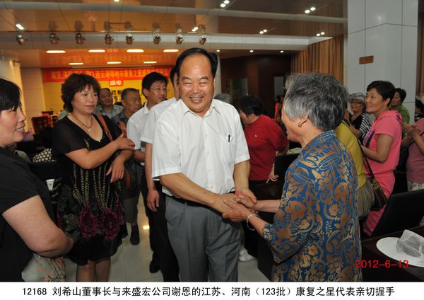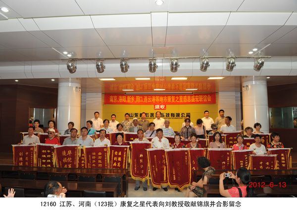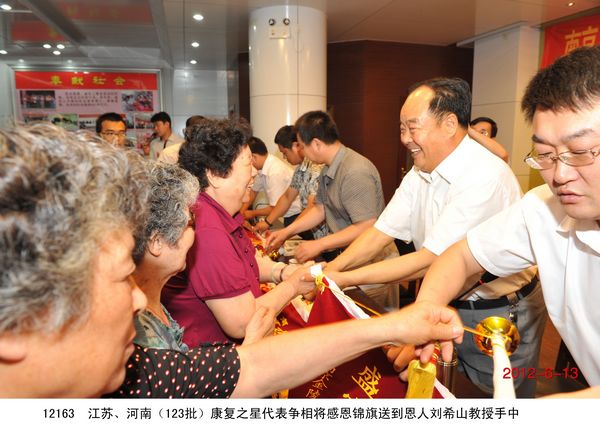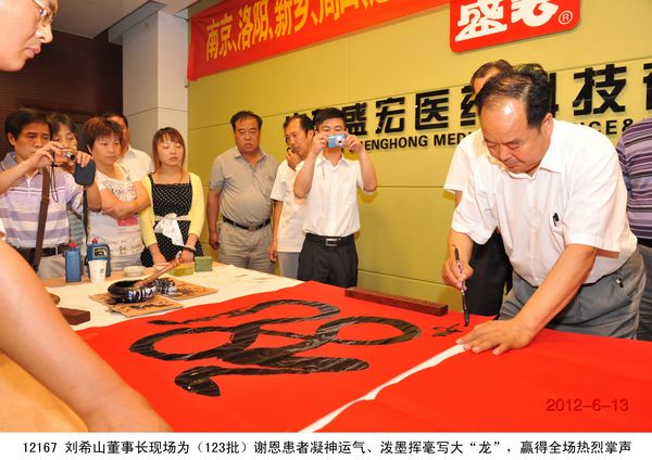 “中藥提速,濟世良醫”、“弘揚中醫國粹,振奮民族精神!” 2012年6月13日,南京、洛陽、新鄉、周口、連云港等兩省五地市的300多名康復患者手托著一面面錦旗到達盛宏公司謝恩。因治愈了股骨頭壞死、腰椎間盤突出、關節炎、肩周炎等頑疾到盛宏拜謝劉希山教授者,已經達到了27省、100多地市、123批、22000多人次。 劉希山董事長與王秋萍總經理放下手頭工作熱情接待大家。南京康復患者王老先生握住劉希山教授的手說:“你不是一個凡人哪,你是一個了不起的人!”謝恩用戶崔有智女士向劉教授獻上錦旗后眼含淚水,她哽咽著說:“謝謝劉教授!您就是妙手回春、華佗再世!”大家搶著與劉教授握手、搶著與劉教授合影、搶著與劉教授交談的熱情感動了所有在場的人,也讓大家看到了經皮給藥、速克頑疾的電磁治療儀是多么受歡迎,真正的濟世良醫是多么受社會尊重。 劉希山教授為大家作了精彩的中藥提速健康報告,并應五地服務中心主任和康復患者邀請獻上墨寶。他凝神靜氣,展臂揮毫,筆隨氣走,神從筆現,大“福”、高“壽”、飛“龍”、臥“虎”,躍然紙上。正當大家嘖嘖稱贊之時,身邊卻出現了三位客人爭搶“壽”字的“突發現象”,劉教授寬厚的面容微微一笑,連說兩聲“再寫,再寫”,使得爭搶的客人頓時臉色發紅,而全場響起熱烈的掌聲。 部分康復病例 1、崔有智,女,69歲,患膝骨關節炎多年,疼痛難忍,行動不便。去過好多大醫院效果均不明顯,后經朋友介紹使用盛宏電磁治療儀,2012年2月份開始用,4個月后病痛竟奇跡般的解除,而且前一段時間還出國去了加拿大,也沒有再犯,完全康復了。親戚朋友都感覺非常神奇。最后她激動地說:“劉希山教授真是妙手回春,華佗再世!” 2、黃萬忠,男,77歲,15年來義務為大家修路一條,榮獲江蘇省“勞動模范”、連云港“愛心市民”稱號。他多年勞作患上了腰椎間盤突出、腿疼等疾病,20多年來住過醫院、貼過膏藥、做過針灸,病情均無起色,偶然的一次機會了解到了盛宏電磁治療儀,經過專家的細心講解、指導,使用1個月后,感覺腰慢慢有了好轉,后來又繼續使用半個月后, 2012年6月已基本康復。 3、趙劍梅,女,66歲,患有退行性膝關節炎十幾年,痛苦不堪,幾乎不能走路,孩子們帶著出國求醫問藥都沒有治好。后經朋友介紹了解電磁治療儀,到店里試用了幾次感覺效果不錯,連續使用僅半個月,至2012年6月已基本康復。 4、杜文光,男,75歲,周口人,患有腰椎間盤突出、風濕性關節炎十幾年,嚴重的時候不能自理,吃飯、走路都要家人幫忙,常年受病痛的折磨,痛苦不堪,做過按摩、針灸、貼過膏藥病痛依然沒有減輕。自己的親姐姐、姐夫使用電磁治療儀治愈了多年的腰椎病、肩周炎后向其介紹,本人抱著半信半疑的想法,試用一個療程后,感覺腿不那么疼了,全身輕松了好多。連續使用三個療程,到現在2012年6月病痛已經完全消失。他激動的說:“劉教授是我的恩人,以后我還會繼續來看望我的恩人。” 5、魏緒德,男,76歲,連云港人,患有股骨頭壞死、骨質增生, 03年發病,到醫院治療醫生建議做手術,手術費需要幾萬元,由于家庭條件并不富裕,不治回家。他常年臥床不起,其痛苦“像上刑一樣”,后來家人多方打聽了解了電磁治療儀,抱著試試的心態,使用11天后,腿慢慢有了知覺,能自己坐起來了,激動萬分,自己慢慢看到了希望,后來連續使用3個月,能自己拄拐下床走路了,使用10個月后,2012年6月跟正常人一樣,病情完全康復。到醫院復查,醫生看了驚訝地說:“不可思議,奇跡!”
