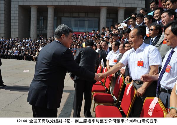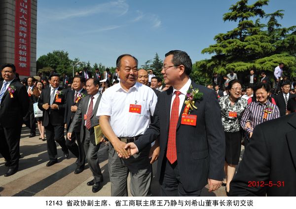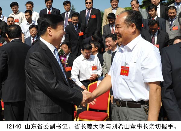 2012年5月31日,山東省工商業聯合會第十二次會員代表大會在濟南開幕,省委副書記、省長姜大明,全國工商聯黨組副書記、副主席褚平,省委常委、統戰部部長顏世元,省人大常委會副主任尹慧敏,省政協副主席張傳林,省政協副主席、省工商聯主席王乃靜出席會議,省政府秘書長蒿峰參加會議,省工商聯執委、盛宏公司董事長劉希山教授也參加了會議。 姜大明代表省委、省政府向大會表示祝賀,向全省廣大工商聯會員和非公有制經濟人士致以親切問候。省政協副主席、省工商聯主席王乃靜做了工作報告。會后,姜大明省長接見劉希山董事長并親切交談,他勉勵劉希山董事長將盛宏中藥提速事業做大做強,走向世界。 |