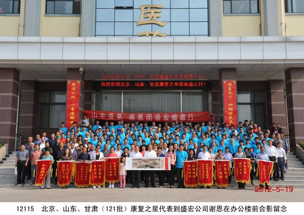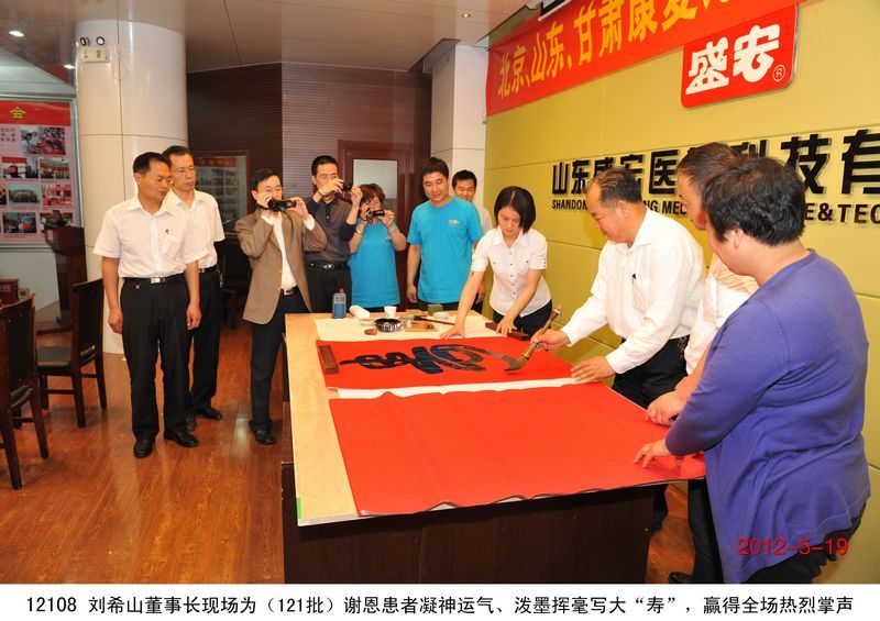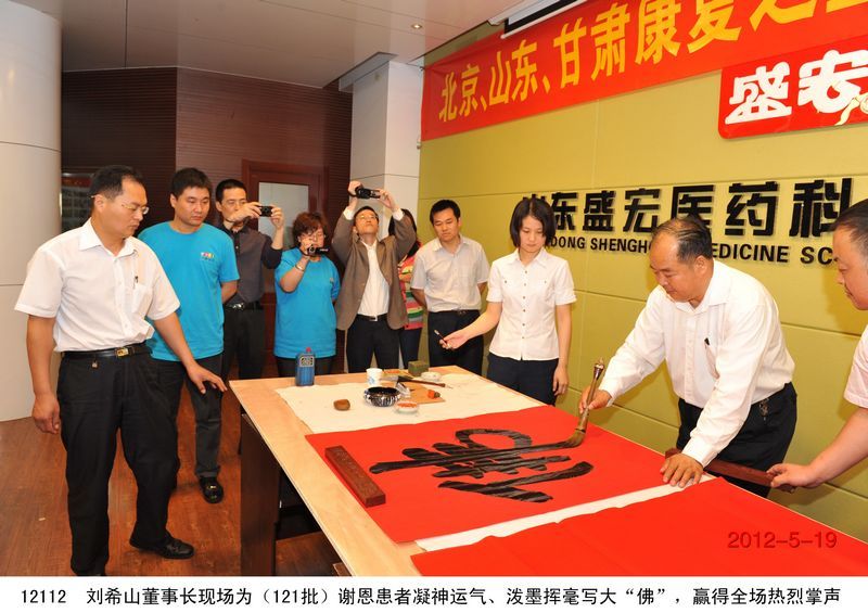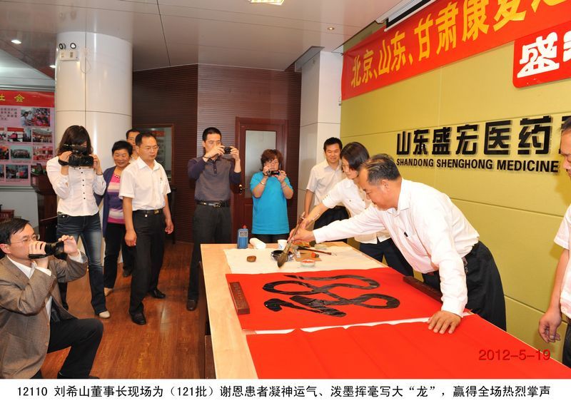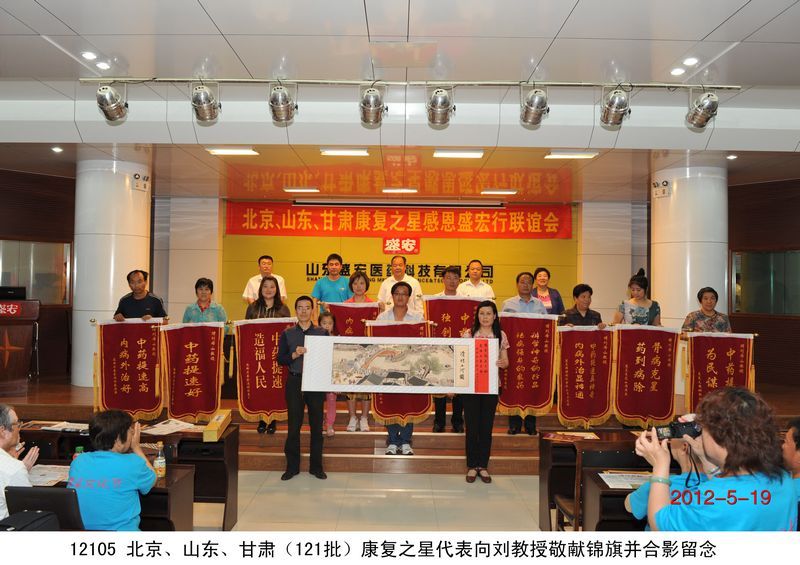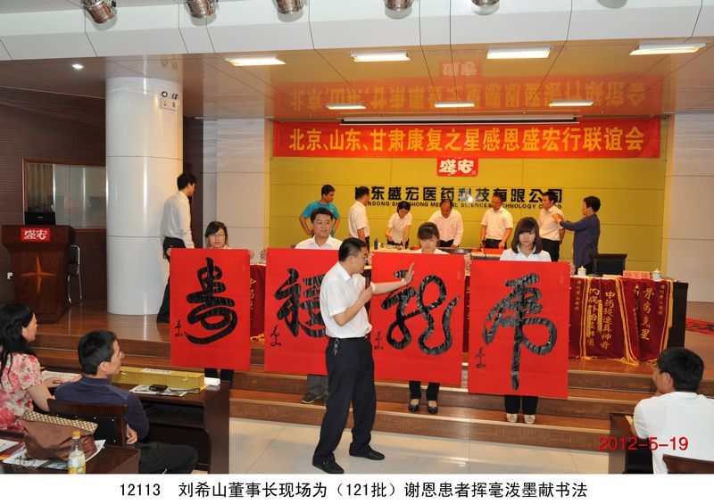 2012年5月19日,北京、甘肅、山東的200多名頸椎病、腰椎間盤突出、關節炎、婦科病等頑疾康復患者乘坐大巴到達盛宏公司謝恩獻錦旗,謝恩者達到了27省、100多地市、121批、21000多人次。 劉希山董事長應邀為大家作中藥提速報告,他將科學速效的健康知識深入淺出地傳授給大家。康復患者們爭先恐后獻上錦旗,甘肅正寧縣服務中心主任、康復患者李向麗將刺繡《清明上河圖》獻給了劉希山教授,這是她歷經兩年多時間才完成的刺繡精品,在當地拍賣會上買方出價到了近3萬元都沒舍得賣,而甘愿獻給尊敬的劉教授。甘肅慶陽市委干部賈金山親身體驗并治愈了困擾自己多年的頸椎病,他這次也來到盛宏公司,一表謝恩,二是面見《希山格言選》的作者劉希山教授。他高度評價《希山格言選》的哲學和道德高度,并發自肺腑地說:“這本書是做人做事的準則,盛宏公司和諧的醫患關系是醫藥行業的準則,這種高度的醫患和諧關系在全國是第一的,是其他任何地方沒法比的!” 最后,北京服務中心主任張耘萍代表200多名客人求劉教授獻上“墨寶”。劉希山董事長欣然應諾,老人家不顧66歲年齡和已經持續了2個小時的報告,他胸有成竹,運筆成妙,寫“中華”二字直要氣吞山河,書“厚德載物”又謙謙自牧,并瞬間完成了下山猛“虎”、三才全“福”、一筆長“壽”和神韻大“佛”,全場掌聲經久不息。 1、黃學菊,女,51歲,山東萊蕪人,患有腰椎間盤突出、冠心病、血脂高,病痛折磨得她痛苦不堪,像洗頭、洗碗這樣的彎腰活都干不了。使用盛宏電磁治療儀3個月零3天,到2012年5月19日,不但能彎腰,而且挑水都沒問題。另外她使用附件型效果顯著,走了兩年的例假又重新回來了。她興奮地說:“是盛宏讓我又重新找回來青春!” |