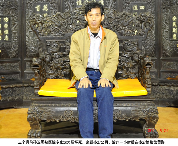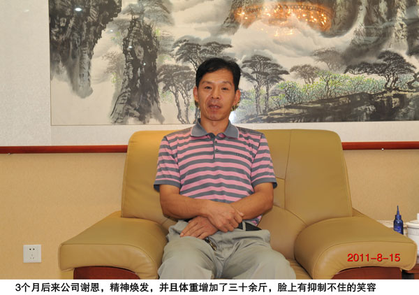 這是我親眼目睹的康復故事——雖然盛宏萬旗館沒有他的錦旗。 2011年5月21日上午,一位叫孫玉周的患者在妻子和姐姐的攙扶下來到盛宏公司董事長劉希山的辦公室,他手足冰涼,臉色黑瘦發黃,雙目無神,在場的我馬上想到了“病入膏肓”四個字。 一番簡單談話,我了解到他是董事長老家濰坊寒亭朱里鎮的鄉親,今年45歲,因患腸壞死,當時正在濰坊市最好的醫院住院,70天花了三萬多元,仍不見效,已經不能吃飯,準備做截腸手術,專家建議他轉院到濟南或北京,“我們是沒有辦法了!”當時的孫玉周和家人,感受到了一種不祥的兆頭!因為病情嚴重,他們想到了劉希山董事長,就悄悄出院找了過來。劉希山教授悲心憫人,他毫不遲疑,現場看片,明確診斷后馬上安排他到治療室,并使用電磁治療儀配B包為他治療,一個小時后孫玉周全身大汗淋漓,半個多月沒有大便的他馬上排出了大便,頓覺通體舒適。 中午,董事長放棄休息,親自請這位老鄉到飯店吃飯,而且還點了孫玉周最愛吃的麻辣豆腐。當其家屬談到專家不讓吃辣時,熟讀中醫、擅長活血化瘀之道的董事長笑笑:“你多吃,沒事!把這盤全吃上才好呢!”已經幾天不敢吃飯的孫師傅一口氣吃完了一大碗米飯、一大盤麻辣豆腐,還想吃時,一直高興看著他吃飯的董事長委婉地說:“頭一頓不可吃太多了。”他才放下了筷子。劉希山教授后來告訴我們,百病因寒起,辣椒可以驅寒,可以活血化瘀,可以刺激壞死的腸道恢復功能,所以吃了不但沒事,而且他非常舒暢。 下午董事長送給他一臺電磁治療儀,讓他在家中治療。10日后,孫玉周痊愈并高興地給董事長打電話:“我能下地干活了。” 2011年8月15日上午,董事長接到孫玉周電話,他要與家人過來感謝,并說一定要帶錦旗、帶禮品才能略表心意。董事長很堅決地說:“不要帶,不要帶,什么東西都不要帶!我什么都不缺,名利對我無所謂!你非要過來不可,人過來就好……”就這樣,下午2:00,我再次看到了康復后的孫玉周。他胖了,體重由不到110斤增到了140多斤,臉上泛著紅色,全家人感激萬分……我看到,年過花甲的董事長雖然多日出差在外剛剛歸來,應該說很疲勞,但他仍然紅光滿面,笑容始終沒停過。我想,這是上天對他老人家的回報吧——將健康快樂送給別人的人,自己也必然是最快樂的人!