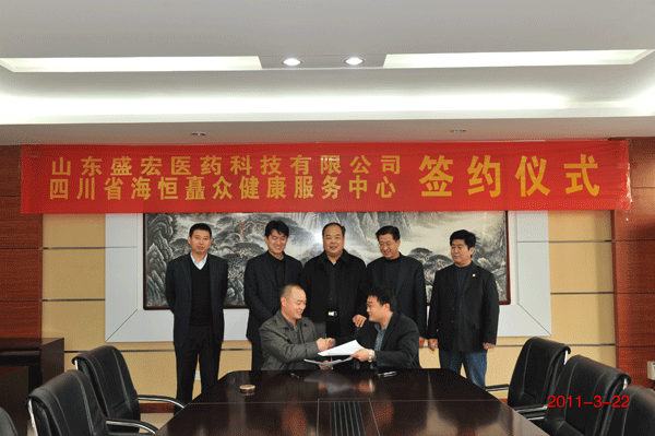 2011 年3月22日 ,春光明媚,百花盛開。盛宏公司與四川海恒矗眾服務中心簽約儀式在盛宏公司三樓會議室舉行。盛宏公司董事長劉希山、總經理王秋萍、海恒矗眾董事長高永林以及盛宏營銷總監劉桂波等出席了簽約儀式。