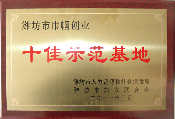 2011年3月8日,山東盛宏醫藥科技有限公司被濰坊市人力資源和社會保障局、市婦聯授予"濰坊市巾幗創業十佳示范基地",盛宏公司總經理王秋萍接受了獎牌。 王秋萍總經理是"山東省三八紅旗手十大標兵"、"省巾幗建功標兵"、"建國六十周年影響濰坊十大優秀企業家"、"市優秀中國特色社會主義事業建設者"、"市巾幗創業帶頭人",數年來她帶領盛宏公司全體員工將中藥提速推廣到大江南北,將健康送進了千家萬戶,受到政府和社會各界的一致好評。