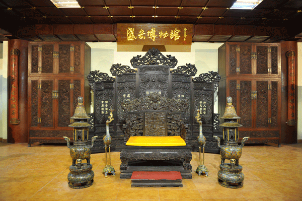 盛宏博物館又稱“盛宏千龍博物館”,館中藏品多數為皇家御用之品,其中有龍床、龍榻、龍柜、龍椅、龍桌、龍屏風等罕見珍貴藏品。該館藏品上雕龍一千多條,故稱“千龍博物館”。另外藏品有歷史名人匾額、御用香爐、古青銅器、玉石制品、象牙雕刻、名人字畫等各大類,觀者無不為之震撼。該館與盛宏萬旗館是一對“孿生姐妹”,大多數藏品是廣大康復患者聽說劉希山董事長酷愛收藏時,他們有的送來自己珍藏的藏品,有的提供藏品線索,使盛宏博物館的藏品越來越多。該館是廣大康復用戶對盛宏感恩回報的見證,又是康復用戶以德報恩的真實體現,該館是盛宏人送健康送出來的,是廣大康復用戶謝恩盛宏謝出來的,是人世間“大愛有緣”愛出來的。所以盛宏博物館既是收藏館、又是鑒賞館,又被譽為 “醫患和諧博物館”。 本館于2010年9月創建