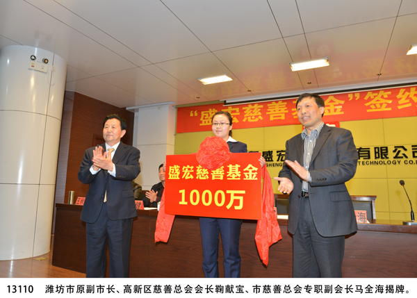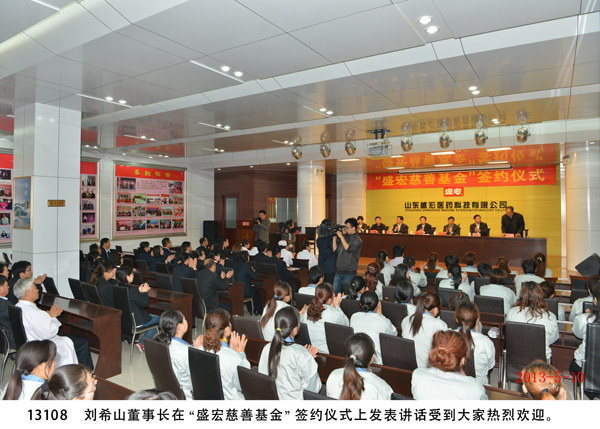 2013年6月7日,山東省優秀共產黨員、道德模范、盛宏公司董事長、盛宏中醫院院長、濰坊市慈善總會榮譽副會長劉希山向媒體宣布:在全國免費救治100名股骨頭壞死和腰椎間盤突出頑疾患者,救治對象是特困患者,首批救治20名開始報名,同時啟動他設立的1000萬元“盛宏慈善基金”。 據了解,股骨頭壞死被稱為“不死的癌癥”,這種病雖然死不了人,但也干不了活,很多患者花錢不少卻難以得到有效治療,許多家庭因為這些頑疾都已經被拖垮。劉希山先生年輕時就立有“愿做善人做善事,不為良官為良醫”之志,先后向社會弱勢群體捐款捐物986萬元,近期他又把親人為他籌備建別墅安度晚年的1000萬元拿了出來,設立了“盛宏慈善基金”,目的是為那些看不起病、住不起院的特困患者做點實事。濰坊市原副市長、高新區慈善總會會長鞠獻寶,市慈善總會專職副會長馬全海共同為“盛宏慈善基金”揭牌。 |