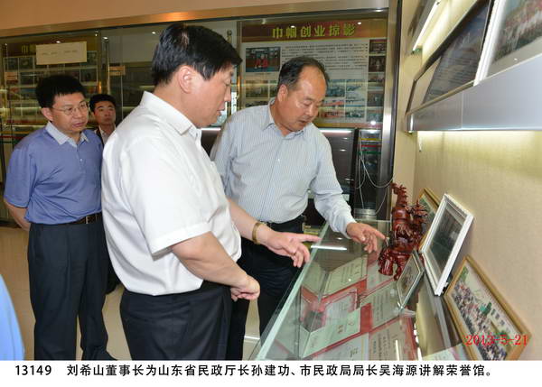 在劉希山董事長的陪同下,孫建功廳長還參觀了盛宏榮譽館、萬旗館、博物館等“盛宏四館”。孫建功廳長對盛宏濃郁的文化氛圍給予贊賞,并高度評價了劉希山教授專著《希山格言選》的思想價值。