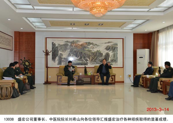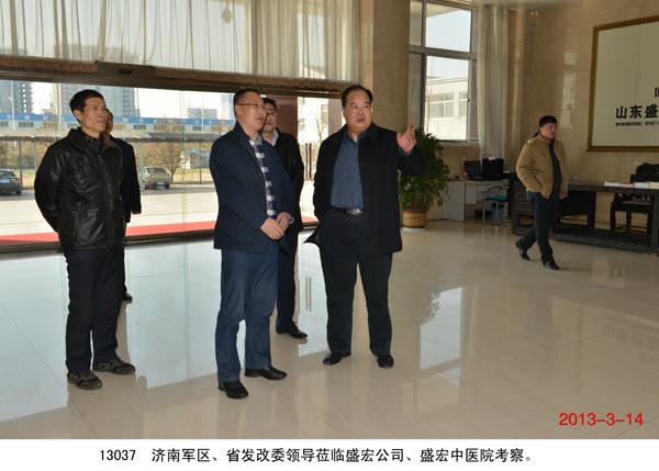 | 濟南軍區、省發改委領導蒞臨盛宏考察 2013 年3月14日 ,濟南軍區、省發改委領導蒞臨盛宏公司、盛宏中醫院考察。盛宏公司董事長、中醫院院長劉希山向各位領導匯報了盛宏在治療股骨頭壞死、腰椎間盤突出、脈管炎、腎病、腹部腫瘤等頑疾領域的取得的成績,各位領導對劉希山教授研發的“中藥透皮十全”療法、“二通一透一收”療法等科研成果給予高度評價,對榮獲發明專利的純中藥產品——盛宏牌“創傷凈”應用于部隊官兵防護的前景非常看好。 據盛宏科研人員介紹, 盛宏牌創傷凈就是歷史所記載的刀創藥,由發明人劉希山教授融入透皮技術后,療速提高數倍,適用于刀傷、創傷、燒傷、燙傷等,對皮膚、粘膜炎癥有特效 ,滅菌率達100%,愈后減少或不留疤痕,是部隊及居家旅游的最佳防護用品。 劉希山教授還陪同各級領導參觀了盛宏的“四館一書”,各位領導對盛宏濃郁的文化氛圍感到震撼,對劉希山先生在慈善事業做出的貢獻,以及盛宏中醫院“治療 股骨頭壞死、腰椎間盤突出、脈管炎、腎病、腹部腫瘤等頑疾見效再付款,是否見效由患者本人確定 ”的醫德醫風表示贊嘆。 |