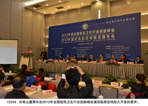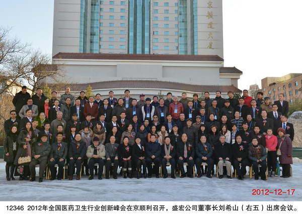 ——盛宏公司連獲三項殊榮 2012 年 12 月 17 日 ,全國醫藥衛生行業創新峰會暨2012中國民族醫藥創新發展年會在北京召開,國家衛生部原副部長、中國醫師協會會長殷大奎,全國工商聯原副主席、著名品牌專家王治國,中國民族醫藥開發委員會副會長、盛宏公司董事長、濰坊盛宏中醫院院長劉希山等出席了會議。大會評選出“盛宏”品牌為“2012中國中醫藥行業最具影響力品牌”、“2012中國中藥提速自主創新第一品牌”,劉希山董事長當選“2012中華中醫藥創新最具影響力人物”,盛宏公司三獲殊榮。