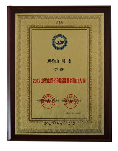 劉希山董事長當選 “中華中醫藥創新最具影響力人物”