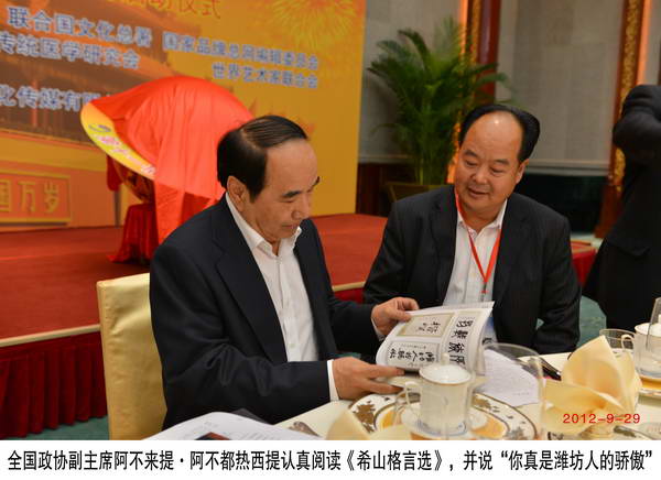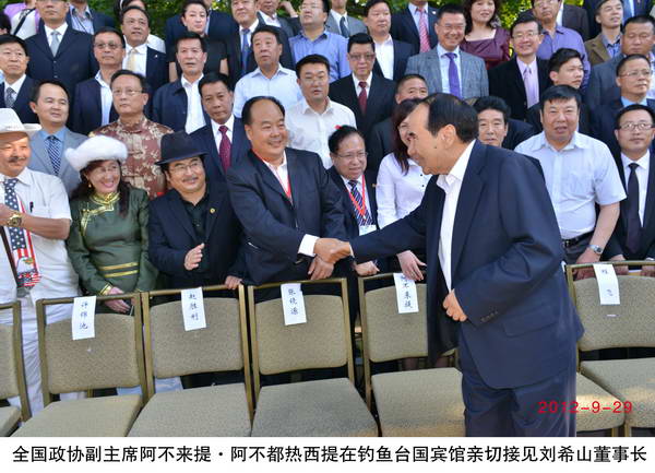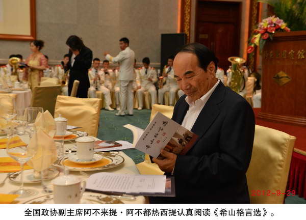 2012年9月29日,劉希山董事長出席釣魚臺國賓館優秀企業家國慶招待會,阿不來提·阿不都熱西提等國家領導人親臨大會,共進晚餐,并對劉希山董事長頒發優秀企業家證書,對《希山格言選》給予很高評價。