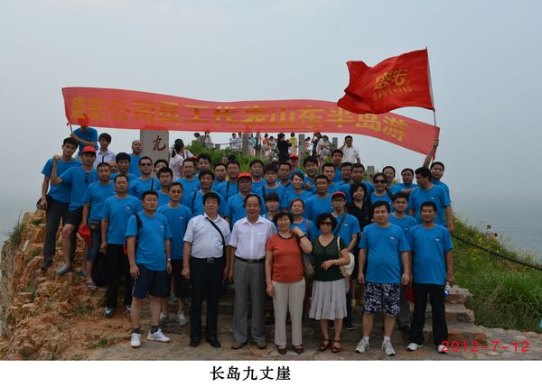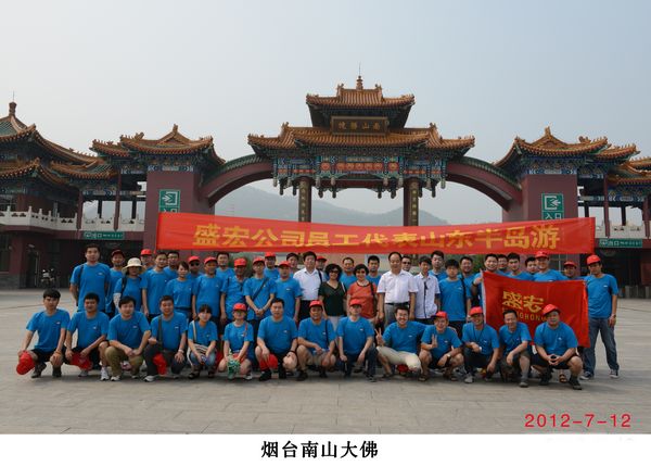 2012年7月12日至15日,恰值盛宏公司半年度開會總結之際,為了祝賀公司半年度任務超額完成,讓奮戰在一線的員工放下工作壓力,暢游祖國山河,66歲的劉希山董事長親自掛帥帶隊,率領市場人員和部分中高層管理人員共計52人暢游了南山大佛、長島九丈崖、長山列島國家地質公園、威海成山頭好運角、神雕山野生動物園、琉璃世界、青島嶗山、青島跨海大橋等著名景點。 在南山大佛山腳下,大家高興地圍繞在董事長周圍合影留念;傍晚時分,長島海灘,董事長一曲嘹亮的《在那桃花盛開的地方》拉開了篝火晚會的序幕,大家敞開胸懷,盡情高歌,最后在市場部合唱《眾人劃槳開大船》中落下帷幕。四天來每一個景點都讓大家大飽眼福。 這次旅游使奮戰在一線的員工們進一步體會到了董事長、總經理對大家的深切關心和愛護,感受到公司家的溫馨,并大大凝聚了團隊精神。