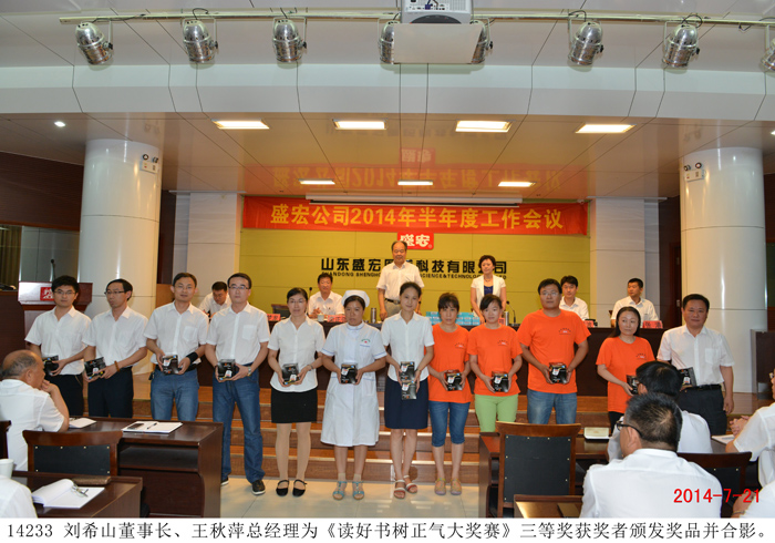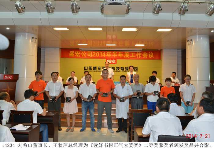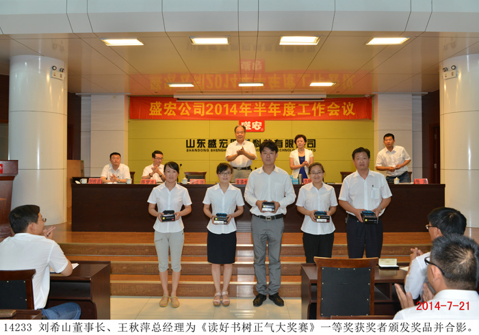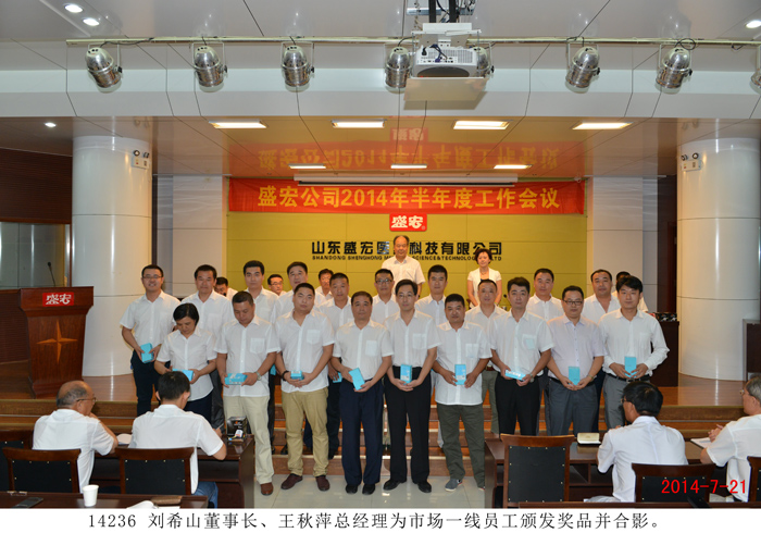 2014 年7月21日 ,盛宏公司召開上半年度工作總結大會,公司董事長劉希山、總經理王秋萍出席會議,全體員工參加會議。 2014 年一開春,公司遇到了大環境的嚴峻考驗,很多同類企業因此倒閉或業績大幅度下滑。而盛宏公司在董事長大部制和賽馬制等戰略戰術指導下,在總經理帶領下,在全體員工和全體代理商努力下,眾志成城,逆勢而上,銷售額比去年同期提高了21%。王秋萍總經理作《半年度工作總結報告》,從六個方面作了認真總結,并就下半年工作做出布置。 劉希山董事長作重要講話,他肯定了半年成績,強調了前期嚴厲打擊網銷和解決制劑車間問題的重要性,并從宏觀對市場等工作提出了五項要求。 部分優秀員工作了表態發言,董事長、總經理為市場人員和參加《讀好書·樹正氣大獎賽》的獲獎者頒發了獎品,全場氣氛團結熱烈。 |