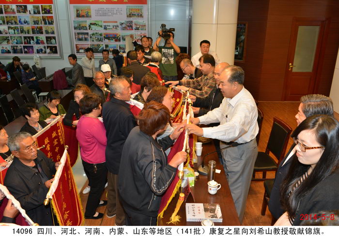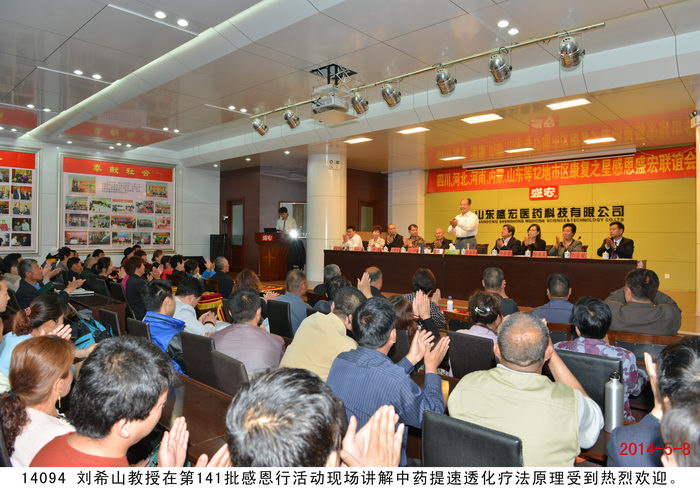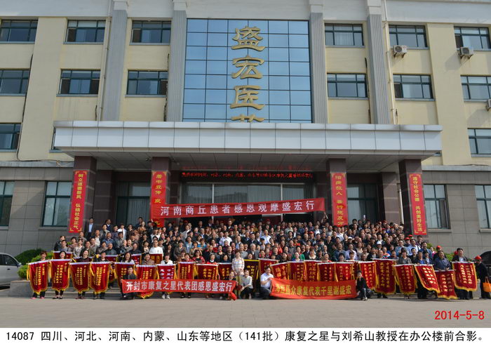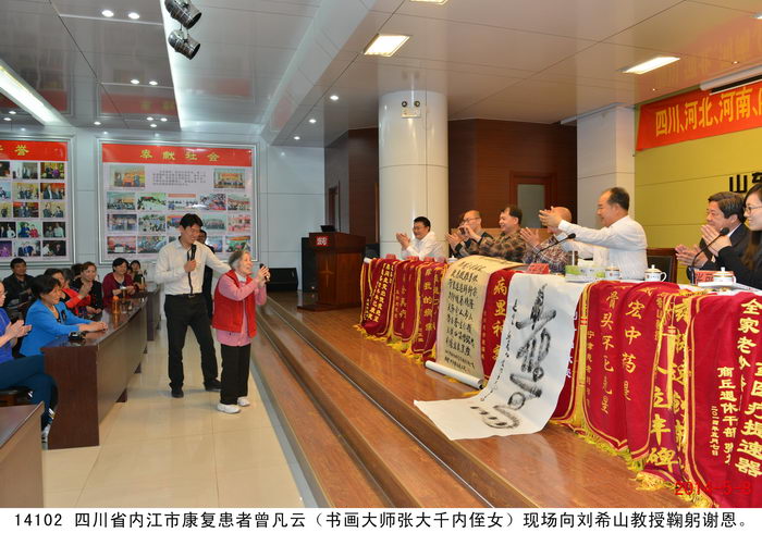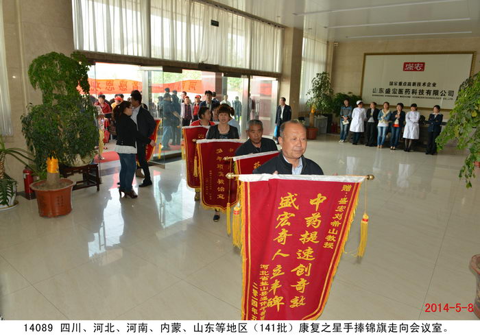 | 五省骨病頑疾康復患者(第141批)到盛宏公司感謝 “劉希山教授治愈了我的病,他就像菩薩一樣大慈大悲,給我們患者帶來了生的希望!”這位年過80歲的四川省內江市老太太,是書畫大師張大千的內侄女,而她也是千千萬萬赴盛宏公司的謝恩者之一。 2014年5月8日,四川、河北、河南、內蒙、山東等五省12地市的350名股骨頭壞死、腰椎間盤突出、腎病等頑疾康復患者,自發組織來到山東盛宏醫藥科技有限公司感謝救治之恩,這是年后第三批赴盛宏的謝恩者。而近年來赴盛宏謝恩的康復患者已經達到了27省、100多地市、141批,共計四萬多人次。濰坊市衛生局醫政科科長石長華,山東省優秀共產黨員、道德模范、盛宏公司董事長劉希山,濰坊日報社新聞部主任叢秉政,山東泉城畫院院長云門子,瑪麗醫院院長助理張麗娜等共同接見了謝恩者。 石長華科長現場講話,他肯定了盛宏公司在中藥提速治療股骨頭壞死等頑疾方面作出的突出成績,高度評價盛宏公司創造的醫患和諧關系,并告訴全國客人:“我這次到盛宏有兩種身份:第一種是代表濰坊市衛生系統歡迎大家不遠千里來到濰坊,來到盛宏公司;二是跟大家同樣的身份和心情,因為我本身也是中藥提速的受益者,他治愈了我多年的腿疼、腰疼病,所以我也是來向劉希山教授謝恩的!” 劉希山董事長接過大家獻上的一面面錦旗,認真傾聽一位位康復患者謝恩的心聲,并為遠道而來的客人作了精彩的健康報告。最后,劉希山董事長應邀揮毫潑墨,他的“一步登天福”、“一生百年青年壽”以“太極體”一氣呵成,令人贊嘆。他還與被譽為“鷹王”的云門子大師合作畫鷹,由劉希山教授書寫無點“鷹”字,而云門子大師在字上畫鷹為“點”,作品字畫一體,珠聯璧合,讓全場客人大飽眼福,并報以經久不息的掌聲。 康復心聲: 1、馬福玉,男,58歲,河北泊頭人,患雙側股骨頭壞死十多年,吃藥、打針均無效果,最后醫院說只能動手術。自己連床都下不了,生活不能自理,非常痛苦。在2013年,經過朋友介紹了解到盛宏電磁治療儀,抱著試試看的心態,試用了幾個療程,感覺效果非常好,后連續使用一年多,現在(2014年5月)已經不疼了,而且能扔掉雙拐自己走路。去醫院拍片子復查,醫生都驚奇能康復得這么好。這次夫妻倆人特意一起到盛宏來感謝劉教授。 2、曾凡云,女,82歲,四川內江人,張大千內侄女。她的老公患有多年的支氣管炎、肺氣腫,09年病情突然加重,有生命危險,醫院都沒有辦法治療。后來了解到盛宏電磁治療儀,再三勸說下,他的老公同意試用看看,結果試用不到一個療程病情真的減輕了,后來連續使用八個月,讓他的生命延緩了一年多的時間。08年,她本人也檢查出患有十二指腸炎、胃穿孔,吃不下飯,睡覺不實。使用盛宏電磁治療儀一年多,現在(2014年5月)已基本康復。她激動地說:“劉希山教授就像菩薩一樣大慈大悲,給我們患者帶來了生的希望。”最后還給大家唱起了《不白活一回》,大家都沉浸在愛的歌聲中。 3、李蘭花,女,50多歲,天津人,患有胰腺炎8年,吃藥、打針均無明顯效果,厲害的時候疼的直哭。后使用盛宏電磁治療儀治療了2個療程,目前(2014年5月)基本康復,藥也停了。最后激動地說:“感謝劉希山教授,又讓我活回來了!” |