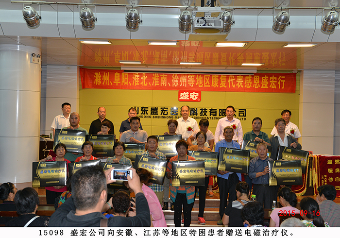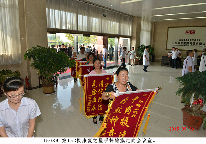 | 第152批康復患者赴盛宏謝恩——全國太極冠軍、針 灸大師孫愛文蒞臨現場并作精彩表演 2015 年9月16日 ,安徽滁州、阜陽、淮北、淮南及江蘇徐州、山東日照等地300多名股骨頭壞死、腰椎間盤突出、頸椎病、肝病、腎病、糖尿病等頑疾康復患者攜帶錦旗,不遠千里來到山東盛宏醫藥公司謝恩。中藥提速專利發明人、盛宏公司董事長劉希山教授,濰坊學院宣傳部部長徐樹芝先生,濰坊日報社新聞部主任從秉政先生,全國太極拳冠軍、香港武術節三屆太極拳冠軍、中醫一級針灸師、“中華第一針”孫愛文大師,共同接見了謝恩者。安徽中藥提速服務中心主任黃鳳偉代表患者致感謝詞。劉希山董事長應邀為客人作了精彩的健康報告,用通俗的語言揭開了中藥提速透化療法和中藥提速頭皮技術治療骨病頑疾的秘密;并以慈父般的愛心,現場向特困患者贈送了盛宏電磁治療儀。全場響起陣陣熱烈的掌聲。劉希山董事長代表公司聘請徐樹芝先生為盛宏“文化學術顧問”,聘請孫愛文大師為“武術健康顧問”。 孫愛文大師現場表演了中華國粹——陳式太極拳。只見他下盤沉穩如磐石,上身游動似蛟龍,掌發陰陽,腳踏虛實,本無極而生太極,由小我而動乾坤,招招形神兼備,忽而云中響驚雷,風吹楊柳折斷枝……陳氏太極的精髓神韻被孫大師發揮得淋漓盡致!真不愧德國、法國等十三國“武術教頭”、全國散打擂臺賽冠軍、全國太極拳冠軍、香港三屆太極拳冠軍之美譽。孫愛文大師的表演使感恩現場的氣氛達到了高潮,臺上臺下響起雷鳴般的掌聲。 據悉,赴盛宏謝恩的全國康復患者達到了27省、100多地市、152批,共計五萬多人次。