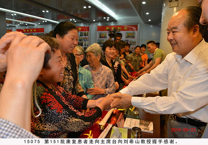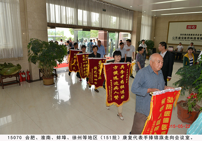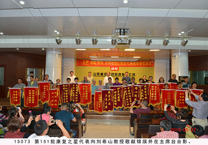 全國第151批腰椎間盤突出等頑疾患者赴盛宏謝恩 大愛無涯,醫患情深。 2015年 5月 22日 ,江蘇徐州、安徽合肥、淮南、蚌埠等地約200名股骨頭壞死、腰椎間盤突出、頸椎病、肝病、腎病、糖尿病等頑疾康復患者攜帶錦旗,不遠千里來到山東盛宏醫藥公司謝恩。電磁治療儀發明人、被莫言題贊為“哲人奇人”的 劉希山 教授放下其它工作,親切接見謝恩者。劉希山董事長大愛無疆,現場將9臺盛宏電磁治療儀分別捐贈給不同地區的9名特困患者,感動了現場所有的人。他還應邀為客人作健康報告,贏得了全場一次次熱烈的掌聲。 據悉,赴盛宏謝恩的全國康復患者達到了27省、100多地市、151批,共計五萬多人次。 附151批部分病例: 1、張菊,女,合肥人,50歲,患股骨頭壞死多年,使用盛宏透化療法半個月,效果顯著,堅持使用到現在(2015.5.22)已基本康復。 2、宇業勤,男,合肥人,48歲,患頸椎病多年, 手都抬不起來,非常痛苦。使用盛宏透化療法1個療程康復。后又發現糖尿病,使用4個療程,現在(2015.5.22)血糖也基本恢復正常。 3、陳來英,女,徐州人,53歲,患腰椎間盤突出多年,每天吃不好,睡不好,腿疼得抬不起來,影響正常生活。使用盛宏透化療法6個療程,現在(2015.5.22)康復。