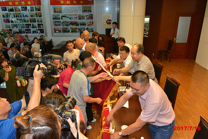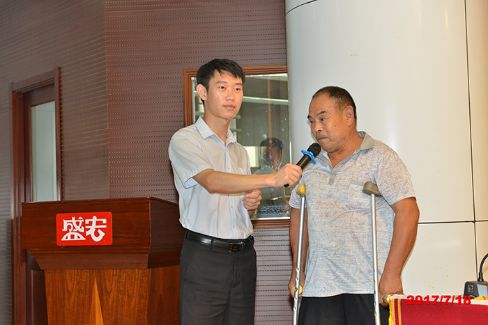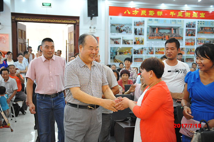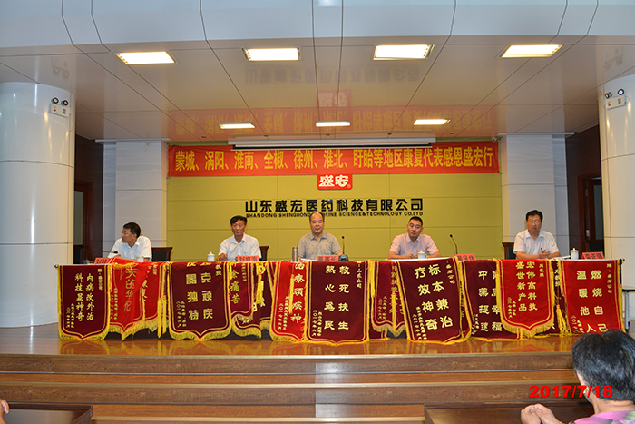 2017年7月18日,三伏天的炎熱比不過康復患者的感恩熱情,蒙城、渦陽、淮南、全椒、徐州、淮北、盱眙等地區的300名頑疾患者赴盛宏公司謝恩,各地謝恩者曾經是腰椎間盤突出、股骨頭壞死、頸椎病、關節炎等疾患者。中國民族醫藥開發委員會副會長、山東省優秀共產黨員、道德模范、盛宏公司董事長劉希山親自接待了遠來的客人。安徽服務中心總裁黃鳳偉先生代表康復患者向劉希山教授致謝,大家搶著與恩人劉教授合影留念,場景感人。