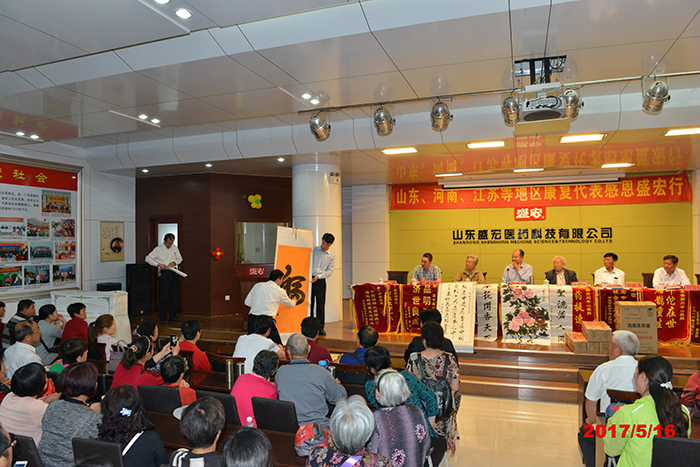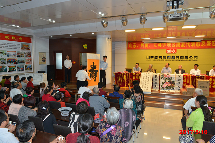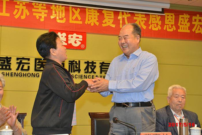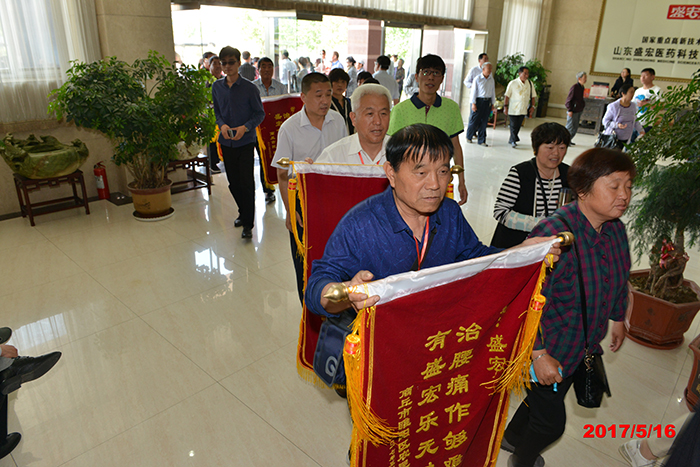 2017年5月16日,山東、河南、江蘇等省的300名腰椎間盤突出、股骨頭壞死、頸椎病、肩周炎等頑疾康復患者赴盛宏公司謝恩。各地用戶為表達感恩之情,或制作錦旗,或書寫字畫,有的還為劉希山教授帶來了山藥、足浴盆等當地土特產。至此,赴盛宏謝恩者已經達到了27省、100多地市、160批,共計六萬多人。一位山東老先生贊嘆:“感恩盛宏行,在中醫藥的史冊上前無古人,在西藥的史冊上更不曾見到,它創造了一個懸壺濟世的世界壯舉!它比任何一項吉尼斯世界紀錄都更有意義!”
